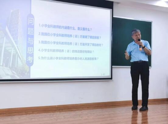 在简短而热烈的开班仪式后,365英国上市集团教育学部宋乃庆教授为学员们带来题为《小学全科教师培养(训)的创新和实践探索》的讲座。宋教授生动阐释了小学全科教师的内涵与意义,并具体介绍了发达国家培养(训)全科教师的经验以及我国在小学全科教师培养(训)方面的教材开发、推进路径等积极探索。