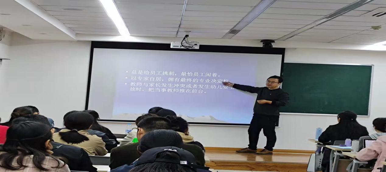 10月26日上午开班典礼后,本项目首席专家——365英国上市集团苏贵民副教授为学员们带来了专题讲座《幼儿园园长专业伦理规范及道德领导》,苏教授以诙谐幽默的语言开拓了学员们的视野,课堂气氛轻松愉悦。