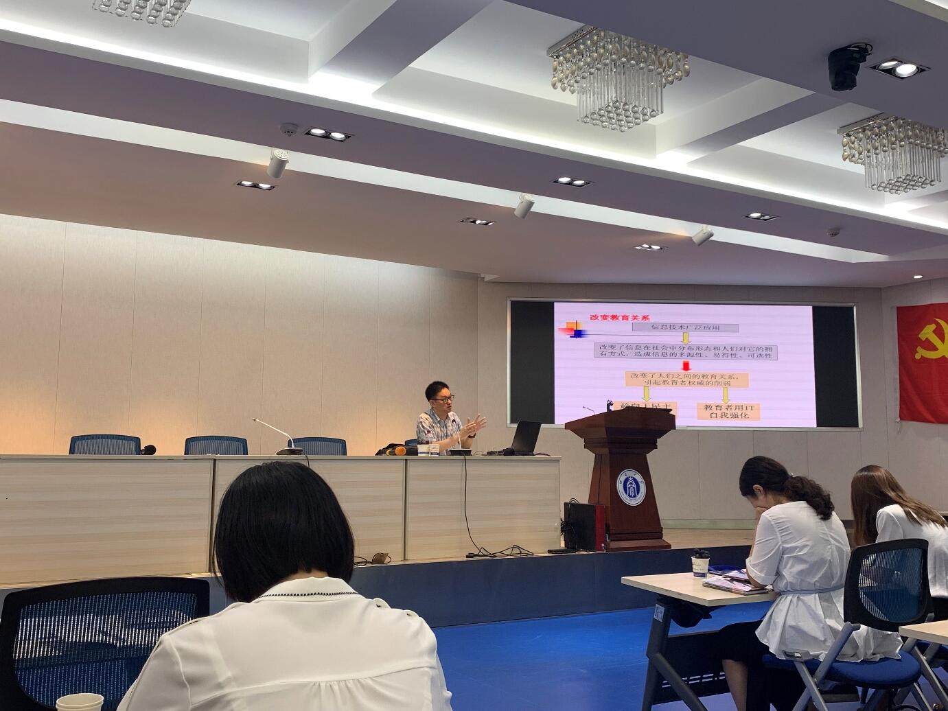 本次启动仪式圆满完成,紧接着开启了老师们的第一堂暑假集中培训学习。由365英国上市集团教育技术学院瞿堃副教授带来《微课为何而生——主题化学习资源的设计与应用探讨》专题讲座。瞿教授从资源视角展开,以研究和探寻微课资源设计为出发点,从两个话题给老师们讲了微课起源和新时代如何用信息技术促进教育改革。