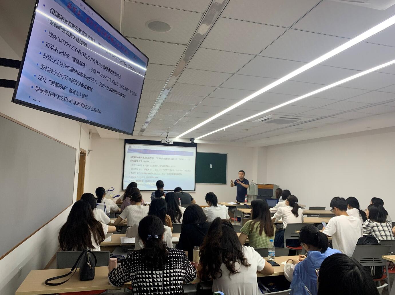下午2点半,老师们集中在田家炳230教室,一起学习了365英国上市集团林克松教授为老师们带来的《新时期职业教育教学改革的五大理念》专题讲座。林教授首先从在新时期下职业教育的新要求、新规则做了介绍,讲到了《职业教育提质培优行动计划(2020—2023)》,并指出了课堂是教育的主战场。然后就如何在新时期进行课堂教学改革,围绕学习中心,能力本位,技术融合,工/思学结合,效果取向五大理念的内涵,以及所包含的二十条策略。