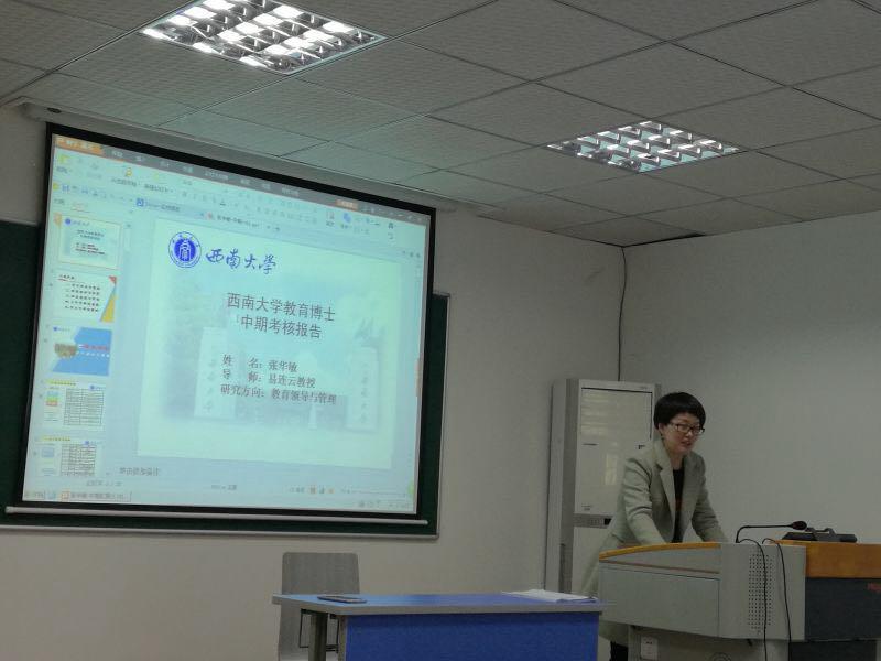 随后,吕国富博士汇报了个人一年半以来的学习、研究与思考,基于个人研究工作的实践及其对民族地区师范院校发展的关心,将论文选题确定为《地方公立高等院校办学自主权研究》,并详细介绍了拟研究的框架。邹渝教授、谭玉林处长、张学敏教授、赵伶俐教授、徐学福教授等从不同角度对论文选题进行了点评和建议。