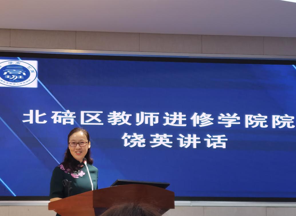 随后,饶英院长就“教师培养模式创新”这一专题进行了精彩发言。她指出,本届流动站相比第一届和第二届,在诸多方面实现了创新,如导师团队及培养班管理机制、培训课程与国际接轨的开放性、班级建设促学员全面发展的包容性、研修理念、路径及方法应用的实效性等。饶院长表示要继续加强区教师进修学院的桥梁纽带作用,并对学员们提出“引领北碚教育”的殷切期望。