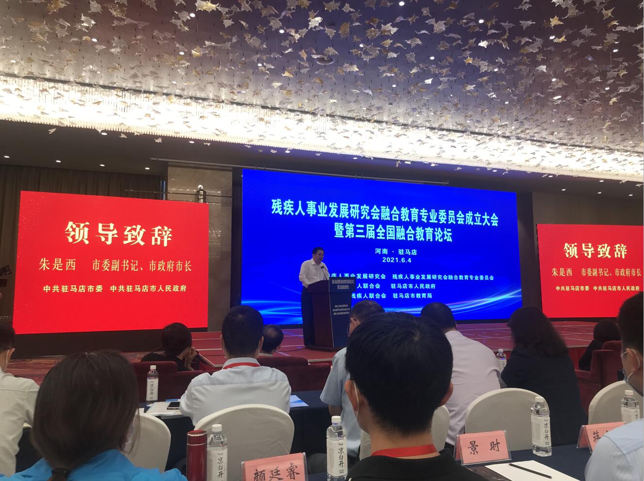 此次大会得到中国残联、河南省及驻马店市政府的高度重视。中国残联副主席、残疾人事业发展研究会会长程凯在致词中指出,“十四五”时期是我国开启全面建设社会主义现代化国家新征程的第一个五年,也是我国实现高质量发展、建设教育强国的关键时期,程凯会长提出以下建议:一是坚持融合的方向;二是坚持医康教结合、家校家园互动,加强卫健、教育、残联等部门的联合;三是强化资金投入和服务保障;四是加强能力建设,制定建设标准、设施标准和服务规范。驻马店市委副书记、市长朱是西在致词中指出,驻马店在残疾儿童康复、融合教育方面,围绕提高“三个能力”,突出“四个强化”,走出了“医教结合、融合教育、特教提升”的融合教育新路子。融合教育专业委员会的成立必将推动我国残疾人事业取得新的更大成就,帮助广大残疾人焕发出更加灿烂的生命辉煌。驻马店市政协副主席、市残联党组书记、理事长张银良致词中介绍了驻马店市学前融合教育工作经验:一是高度重视,提高站位办实事;二是创新发展,“四化推进”抓提质;三是锻造队伍,特教提升建师资;四是强力推进,合作共建促发展。