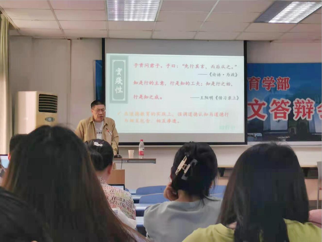 5月28日下午15时,教育学部“学术五月”文化节系列学术讲座第四讲在学部322教室正式开讲,由教育部基础教育教学指导委员会委员、广东省教学名师、华南师范大学博士生导师黄明喜教授作题为《怎样品鉴国学经典教育智慧——以<论语>为例》的学术讲座,一百余名师生参加听讲。讲座由教育史专业学科负责人谢长法教授主持。