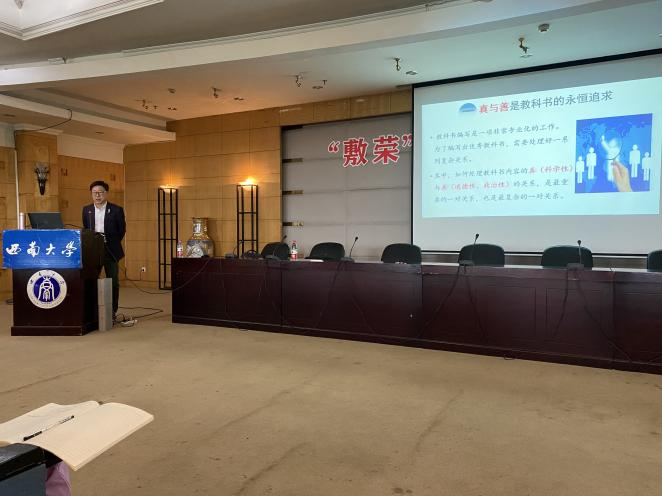 讲座伊始,石老师借这两个案例点出本次讲座主要研究与讨论问题——“教科书编写应该求真还是求善”。接着,石老师指出真与善是教科书的永恒追求,如何处理教科书内容的真与善至关重要,要正确认识教科书中求真与求善的关系。 最后,石老师提出要高度警觉教科书求善的优势地位,并阐明了有可能带来的风险。