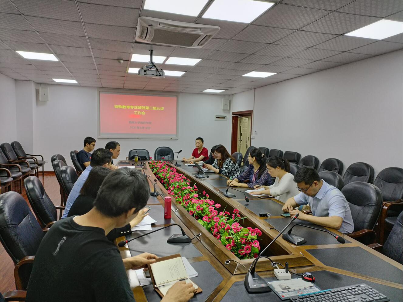 本次会议由特殊教育学院赵斌院长主持,教育学部副部长王正青、特殊教育学院部分教师以及参与认证的其他相关人员出席了本次会议。