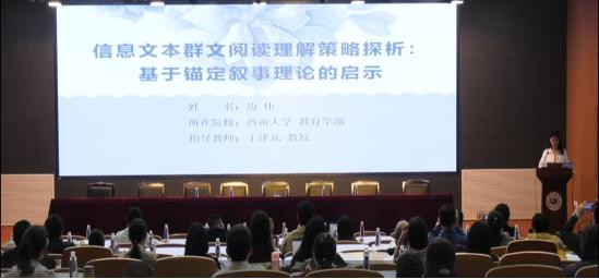 博士研究生边伟作了题为《信息文本群文阅读理解策略探析:基于锚定叙事理论的启示》的报告,提出需从改革趋势、理论需求和现实困境三个方面整体关照信息文本进行群文阅读的价值与意义,并对法学领域中的锚定叙事理论与信息文本群文阅读的融合理据及路径进行了系统诠释。