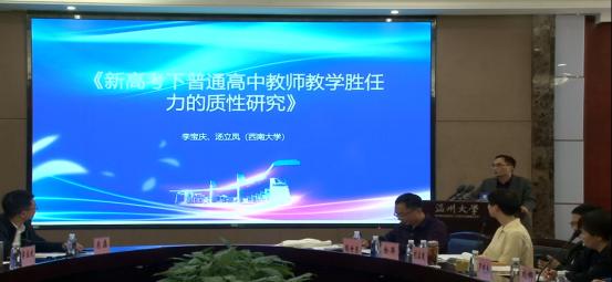 李宝庆教授作了题为《新高考下普通高中教师教学胜任力的质性研究》的报告,指出新高考改革背景下普通高中的教学发生诸多改变,如教学观念、教师课程理解、教师角色反思、教师专业发展等,而面对变革中的复杂教学情境,深刻剖析教师教学胜任力的结构及提升路径就显得尤为必要。