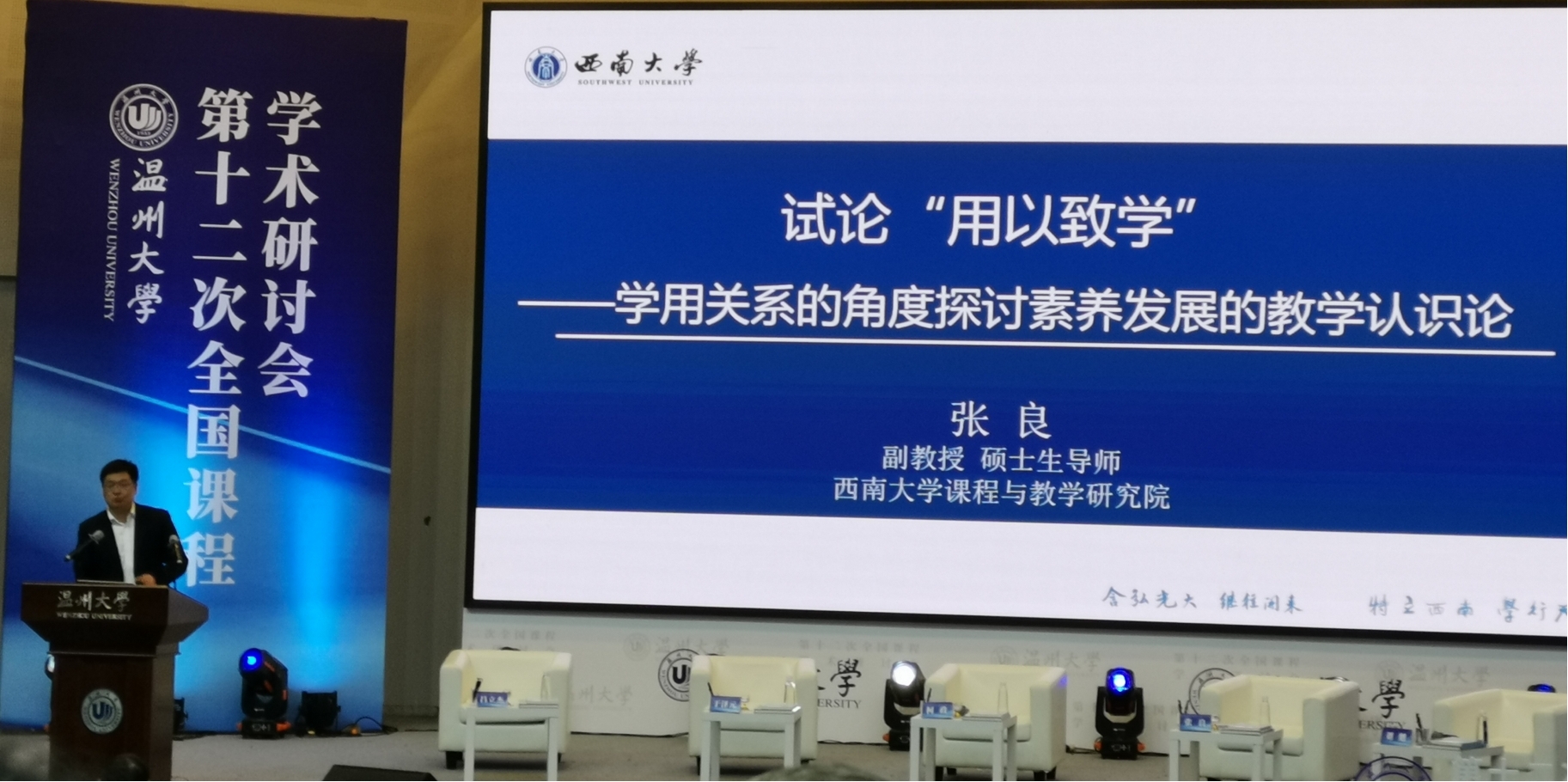 张良副教授以《试论“用以致学”——学用关系的角度探讨素养发展的教学认识论》为题做了大会主题报告,指出“用以致学”通过调整“学”与“用”的位次关系,旨在重估实践的认识论意义,进而更好地促进“学以致用”。“用以致学”作为实践取向的教学认识论不仅勾勒出化知识为素养的教学机理,同时还体现了现代认识论研究实践转向的趋势、学习科学的最新进展以及中国文化内蕴的力行认识论传统等依据。