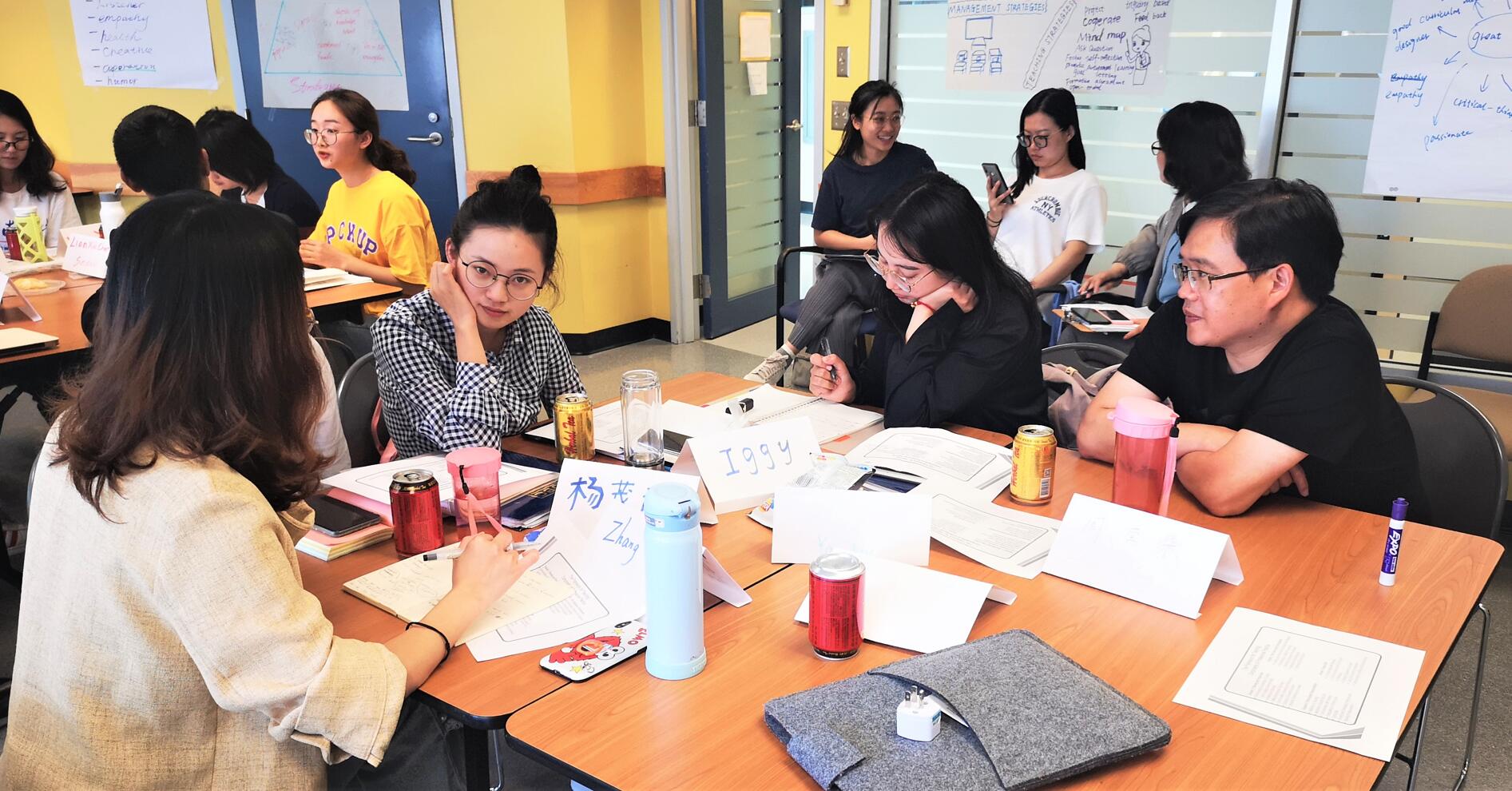 “什么因素造就了优秀的教师?”是贯穿此次研学的核心问题。8月15日下午,Tom Grant教授和同学们再次聚焦此问。通过反思,每位同学从影响优秀教师的诸多因素中选出自己最擅长和最欠缺的方面,拟定改进计划,并邀请4位带队老师到各小组进行指导,完善自己的方案。经过激烈讨论交流,同学们加深了对职业自我的认识,明晰了未来前进的方向。