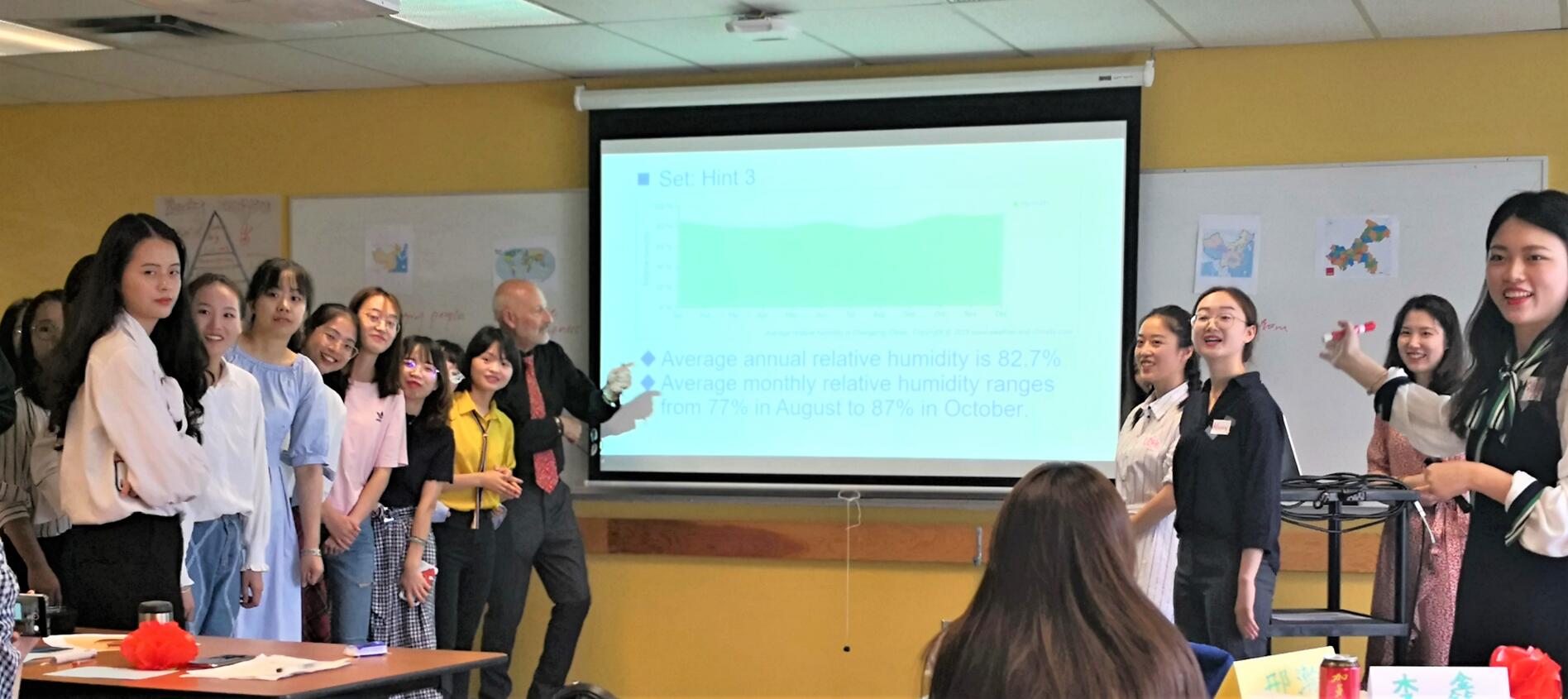 最后一组则从“火锅”切入,探讨重庆潮湿气候与山地地形的关系,独特的导课方式,问题引导式教学过程,以及Kahoot等网络教具的使用,使课堂教学形式多样,生动活泼,效果显著。各小组汇报完毕后,Tom和带队教师进行了点评,充分肯定同学们此次研学取得的成绩。