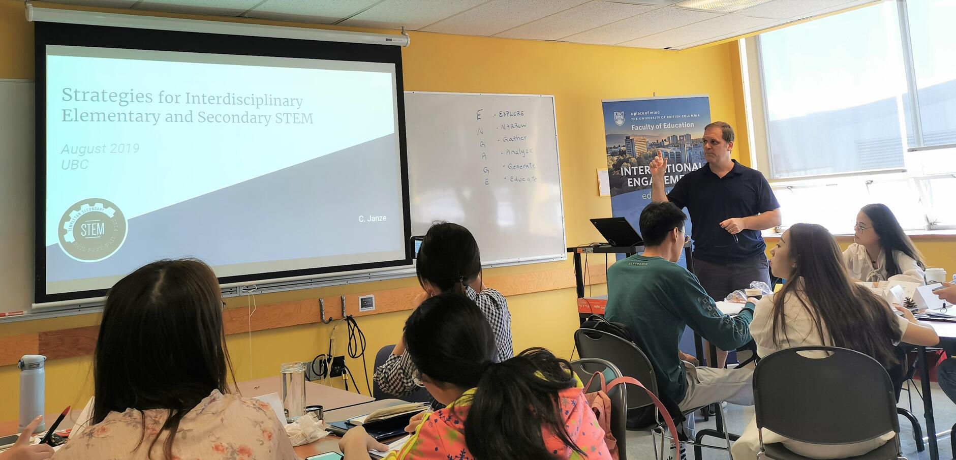 8月12日,由29名师生组成的学部“假日学校”国际访学团之一,不列颠哥伦比亚大学(University of British Columbia,以下简称“UBC”)暑期访学团开启了最后一周的学习和研究生活。本周围绕“高效教学”(High Impact Teaching)主题开展研学活动,紧张与挑战并存,反思与收获同在,既提炼了前两周学习精华,又展示了本次访学成果,为2019UBC研学之旅画上了圆满句号。