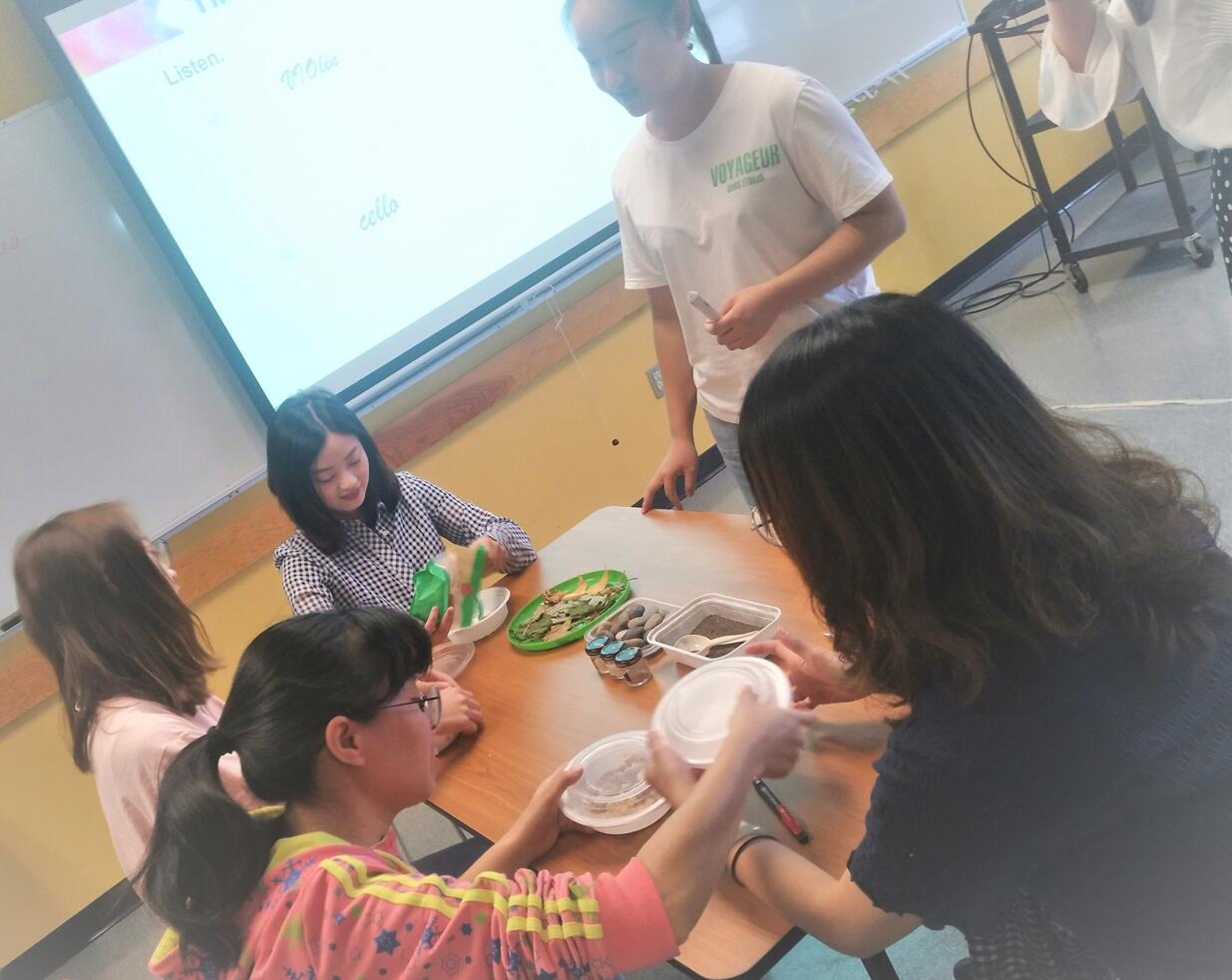 第一组以“声音”为主题,采用探究式教学,启发学生利用现场教具发出不同声音,从而了解声音的特性和产生机制。第二组汇报题目为“Good morning! Canada!”在一首欢快歌曲后,采用绘本方式讲解加拿大的海狸、鹅和冰球等,激发小朋友探索加国文化的好奇心。