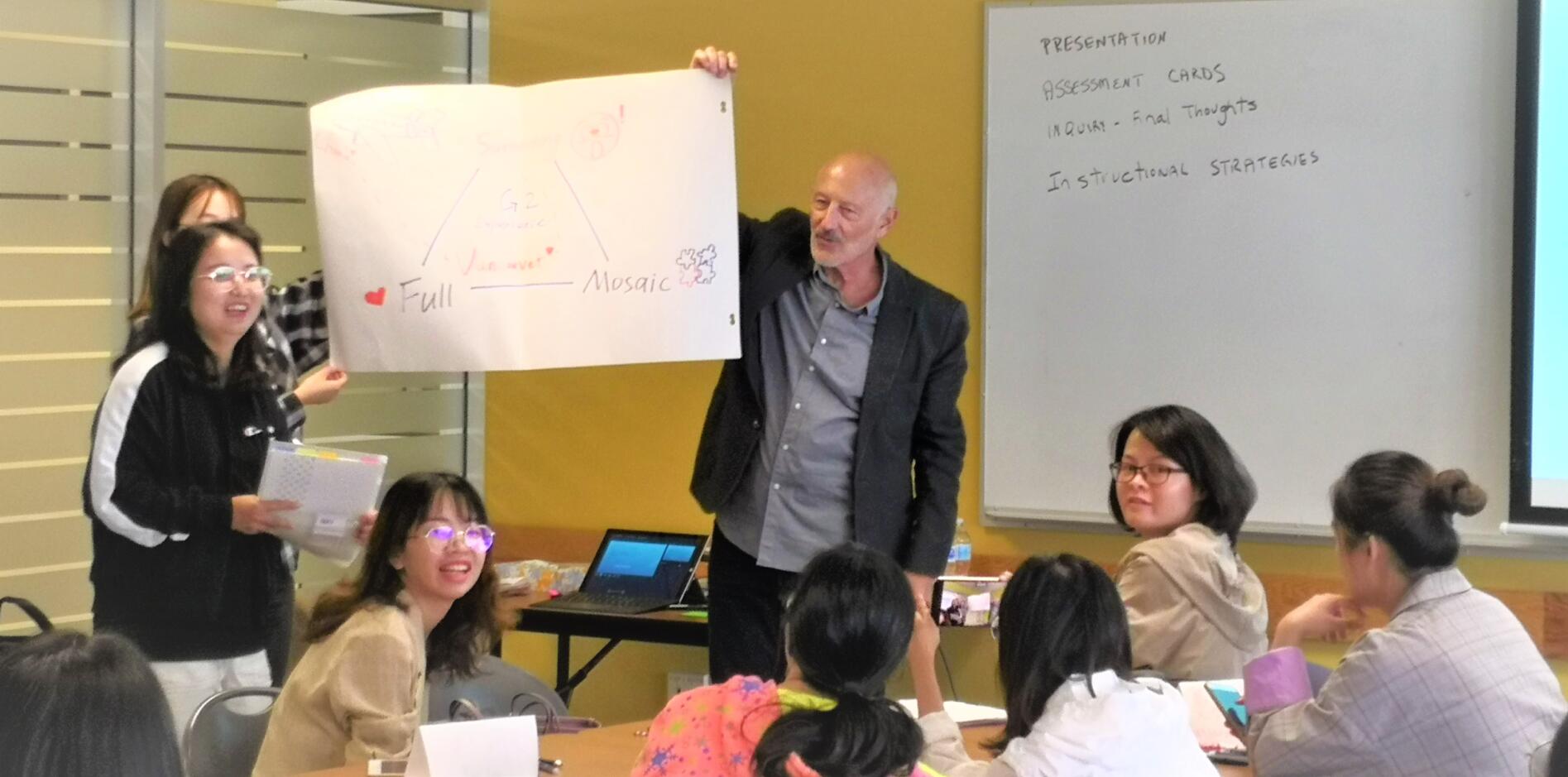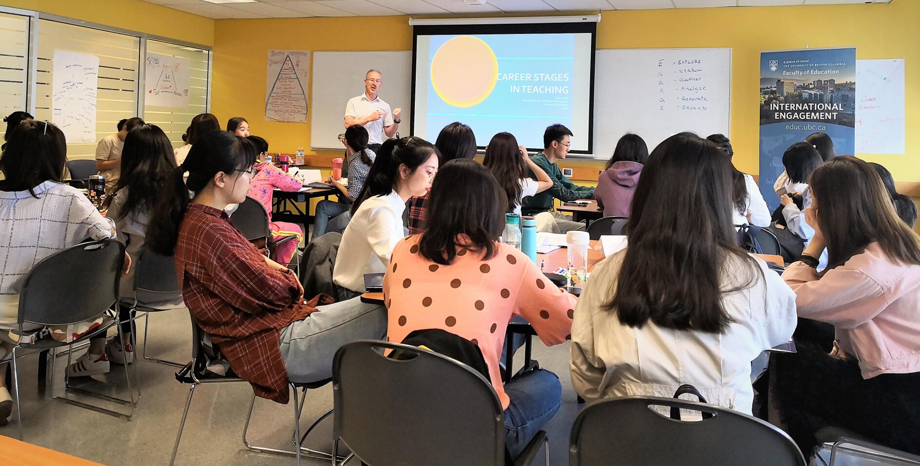 8月13日上午,温哥华学校委员会(Vancouver School Board)前副督学Gary Little为同学们呈现了“教学职业阶段”(Career Stages in Teaching)的主题讲座。凭借丰富的教学和管理经验,借鉴多种教师专业发展阶段理论,Gary深入浅出地阐明了教师在不同教学阶段的主要特点和任务,引发大家对自己未来从教生涯的深思。