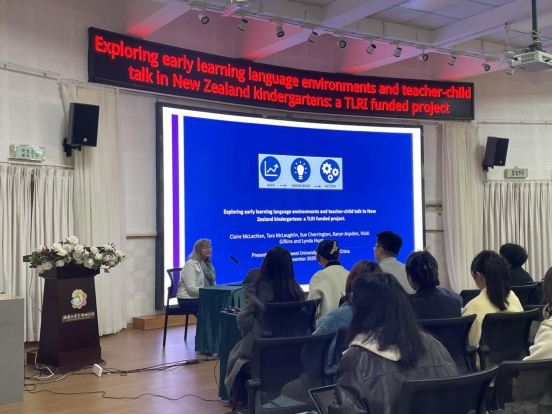 Claire McLachlan教授以专题讲座的形式,分享了“新西兰幼儿园早期学习语言环境和师幼对话的探索:一项教学与学习研究计划资助的项目”。早期语言环境对儿童语言、认知、社会性发展有深远影响,尤其是“回应性互动(serve and return)”对儿童早期发展至关重要。基于项目背景和文献基础,Claire McLachlan教授详细阐述了研究框架的设计。该项目采用“数据-知识-行动”的循环研究模式,邀请两所幼儿园的教师团队参与,运用了多种数据收集工具,通过多轮数据驱动的教学探究循环,支持教师进行反思与改进实践。项目数据显示,有计划且即时的对话策略有助于促进儿童的语言发展,丰富持续共享思维(SustainedSharedThinking,SST),增强教师的教学调整能力和专业自信。未来研究可进一步探讨积极学习互动在教学中的价值,拓展数据工具在不同教育场景中的应用。