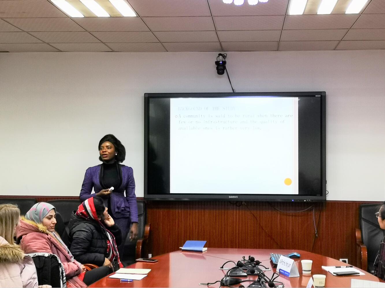 Vivian presented on community education strategies for the implementation of Development Programmes in Rural Communities of Rivers state, Nigeria. She emphasized on the kind of natural resources available for the particular rural community but yet its inability to progress. Her goal was to identify the right strategies which would be accepted and appropriate for the community to ensure its progress. Much was not said about the study methodology; population, research design, etc.The experts advisedherto tie the research to hermajor (Education in Economics and Management). Prof. Zhong questioned the significance of the study and requested her to apply it to a wider context. She was also questioned on how the study links to leadership or management and was admonished to present a better study next time.