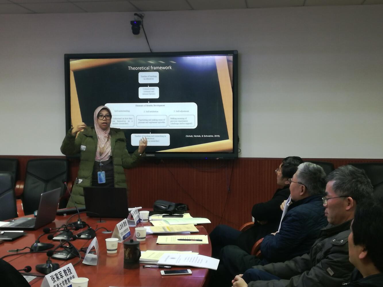 博士生Rifky Dora Wijayati,“作为研究者教师的自我认知发展”是她主要探讨的话题,Rifky在印度尼西亚采集了多方视频和照片等一手研究素材,并向大家展示其当前研究成果。徐学福教授表示教师和研究者是两个不同的概念,论文中应明确概念,不然会造成信息重叠。