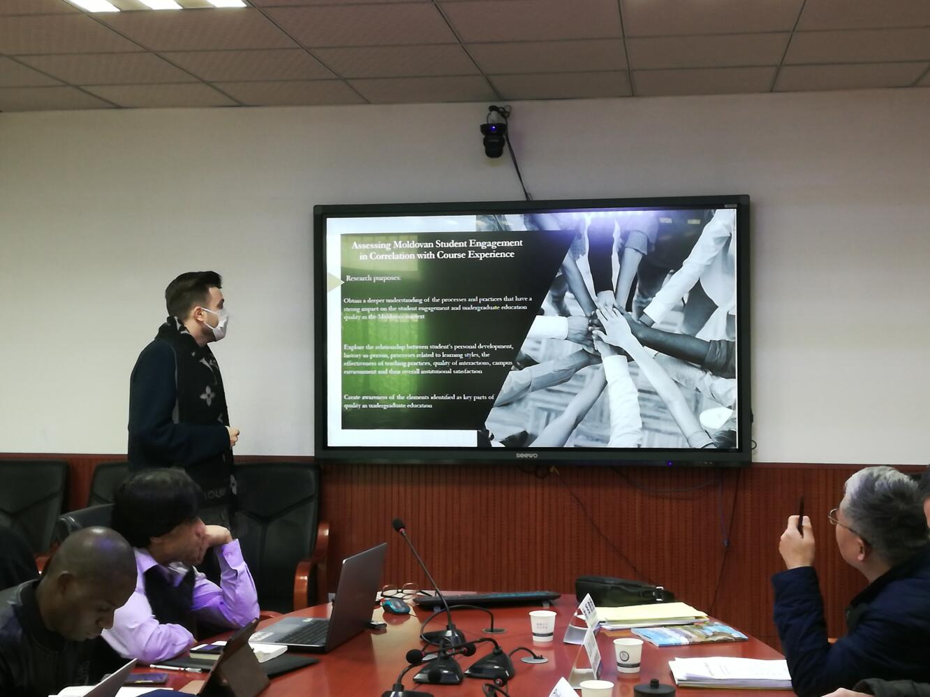 博士生Traian Ropot以“评估摩尔多瓦的学生管理与课程体验之间的相互关系”为主题,展示自己的研究进程。么加利教授建议可以适当拓宽视野,将自己的研究与他人已有的相关研究建立关系。徐学福教授和李姗泽教授表示需要丰富论文的研究过程,不要局限于单一的研究方法。