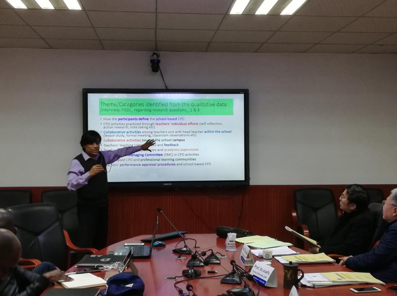 博士生A. K. M. Badrul Alam以“小学教师可持续专业发展以促进教学竞争力”为视角,从个人发展、集体学习和其它方式三个方面阐述如何提升教师的可持续性专业发展。么加利教授提议可以将标题稍加改动,更为突出二者间的关系,徐学福教授认为教师可持续性发展包括多方面的因素,一定要根据论文内容,区分概念,切忌混为一谈。