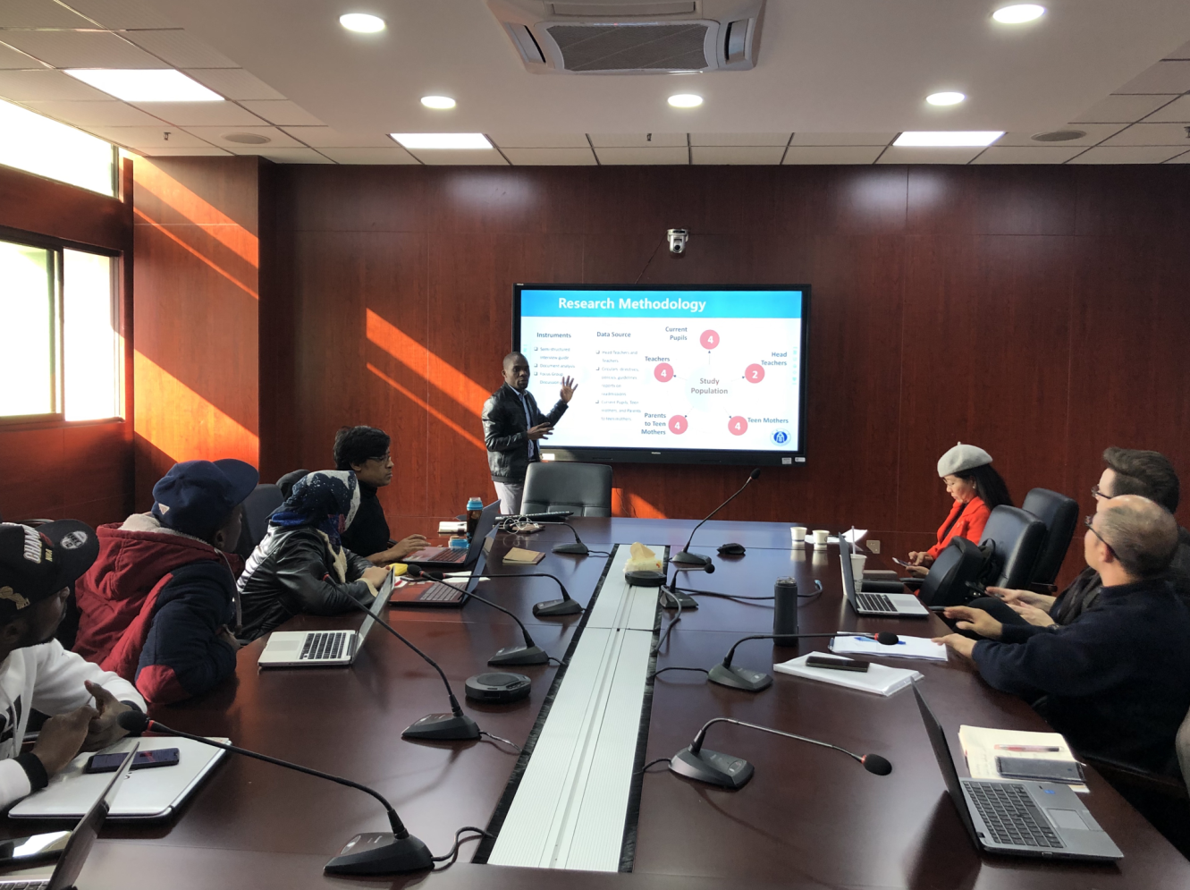 此次工作坊由17级、18级班主任周玲老师主持,共有九名留学生进行汇报交流,汇报内容分为两个部分:五名三年级留学生汇报博士论文研究进展,四名即将开题的二年级留学生汇报研究选题和论文的初步计划。