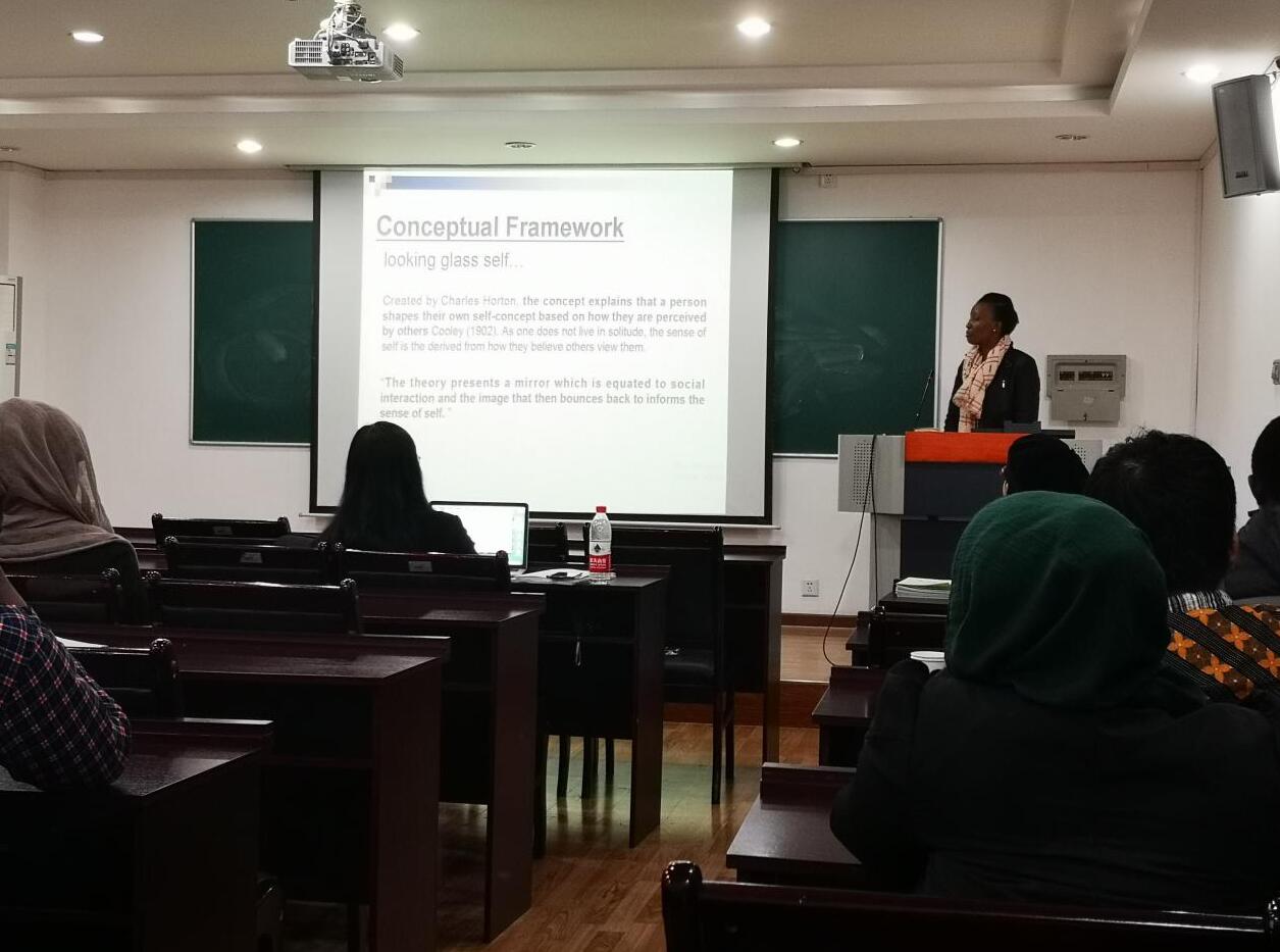 来自博茨瓦纳的硕士二年级研究生MATSAGOPANE, YAONEDUDUETSANG主要汇报为开题报告做的准备工作,她以“Exploring the Decline in the Professional Status of Teachers(探求教师职业地位的下降)”为研究领域,拟从一个中学教师的视角和认知出发,去分析博茨瓦纳教师的职业地位现状以及教师职业地位的变化和发展,探讨教师职业地位下降的因素,以及如何转变教师对职业地位的认知等。