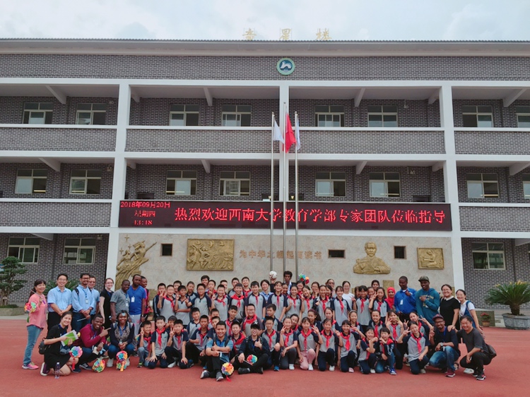 9月20日,在教育学部韩仁友书记、王华敏副书记的组织和领导下,留学生班主任周玲老师带领学部全英文留学生一行18人来到重庆市南川宁江小学参观学习。
