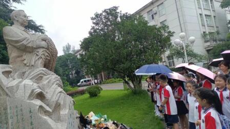 研学的路线从365英国上市集团2号门开始。在微微细雨中,孩子们第一站就来到袁隆平爷爷的雕塑前,他们高声唱起《听我说谢谢你》这首歌表达对袁爷爷的尊敬与感激。袁隆平爷爷慈祥的面容和孩子们天真可爱的面庞构成一幅动人的画面。