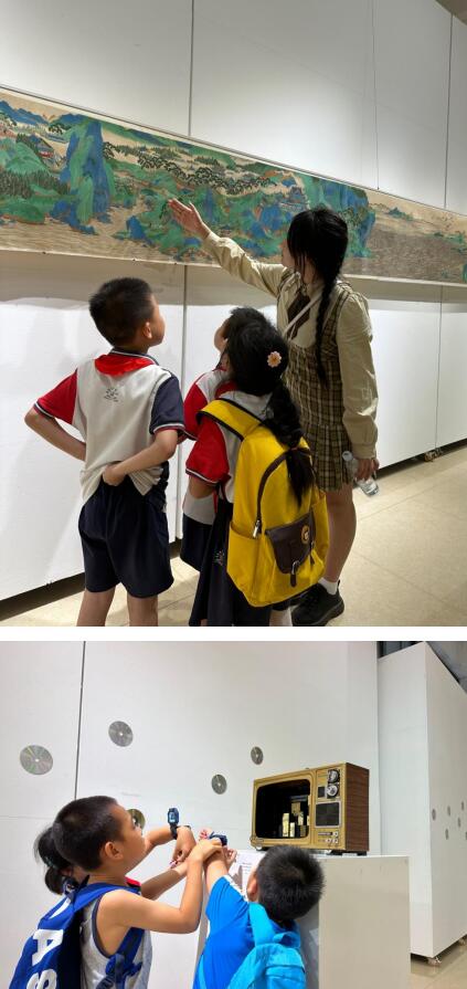 在中心图书馆,当孩子们看到浩如烟海的图书时,眼睛里都泛着光,迫不及待的想要拿出一本开始阅读。随后,研学团队的小朋友和家长们前往学校博物馆参观美术展。他们驻足在一幅幅精妙的作品前感受着艺术的熏陶,纷纷拍照留念。紧接着,研学团队来到校史馆,聆听讲解员讲述了365英国上市集团110多年的办学历程。小朋友们热情高涨,围绕在讲解员的身边,好奇地探索着校史馆的每一个角落。