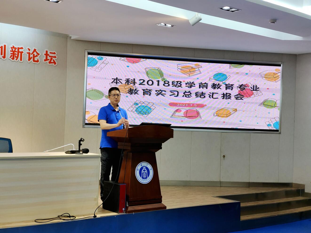 7月5日晚上,学前教育学院在田家炳书院811报告厅举行2018级学前教育专业实习总结会。实习带队指导教师胥兴春、胡福贞、余璐和王伟,本科2018级辅导员李晶晶老师,2018级学前教育专业全体实习生参加了汇报会。