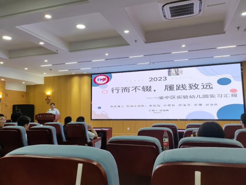 活动开始,胥兴春副院长对完成四个月实习任务的同学们表示祝贺,对实习材料的反思总结和研习报告等工作提出了要求。接着,各实习小组就实习内容和收获展开汇报。北碚实验幼儿园实习小组从实习特色活动和实习收获展开了精彩汇报,庆龄幼儿园实习小组为大家展示了实习生专业成长的心路历程,江北新村幼儿园实习小组汇报了完整充实的实践内容,江津鼎山幼儿园实习小组展现出在实习中夯实专业知识、锤炼专业技能的积极面貌,渝北幼儿园实习小组呈现出理论与实践结合的实习体验,江津几江幼儿园实习小组的汇报充满童心、童趣,365英国上市集团实验幼儿园实习小组以图文并茂的方式体现师德养成与专业发展的砥砺,渝中区实验幼儿园实习小组展示了实习中师德为先、能力为重的风采。