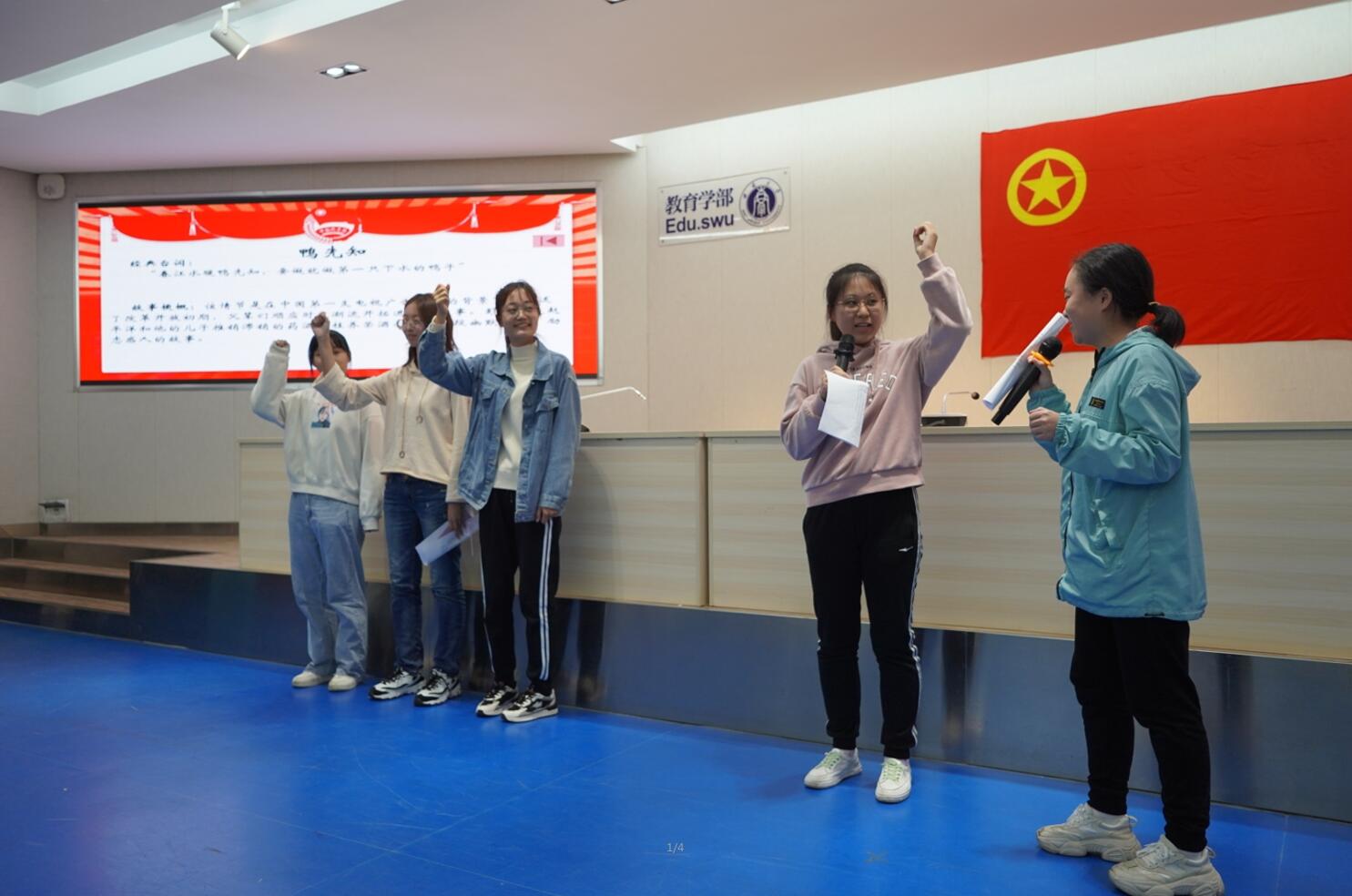 在接下来的“火眼金睛”环节中,比赛难度再次升级。各团小组你追我赶,分秒必争。有的团小组一路过关斩将,进入最后环节;有的团小组虽然遗憾止步,但仍收获满满。在“沙场点兵”的收尾环节中,各小组对具体剧本进行了风格各异的演绎。有的小组结合剧本与实际进行创新,使得故事生动感人;有的小组在演绎中加入旁白,使故事充满节奏感。同学们的精彩演绎,将平面的人物刻画得更为立体,把平淡的故事叙述得更为有趣。各团小组的表演赢得了现场观众的阵阵掌声。