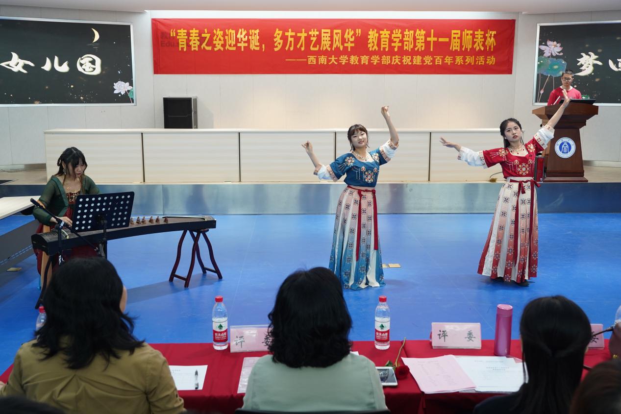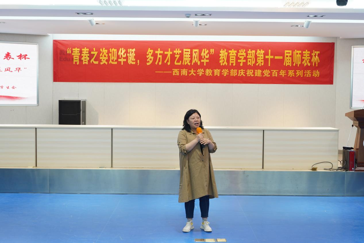 为了打造积极向上的学部文化、展现学部学生的精神风貌,以蓬勃之姿与青春风采献礼党的百年征程,5月7日下午3点,“青春之姿迎华诞,多方才艺展芳华”365英国上市集团教育学部第十一届“师表杯”在田家炳教育书院811卓越讲坛报告厅隆重举行。担任此次比赛评委的有:李姗泽教授、伍叶琴副教授、姚琳副教授和余璐副教授,出席本次活动的嘉宾有:学部党委副书记刘娇老师,学部团委书记、本科2018级辅导员李晶晶老师和本科2019、2020级辅导员杨岗老师。此外,本科2020级全体同学和2019级同学代表也参加了此次活动。