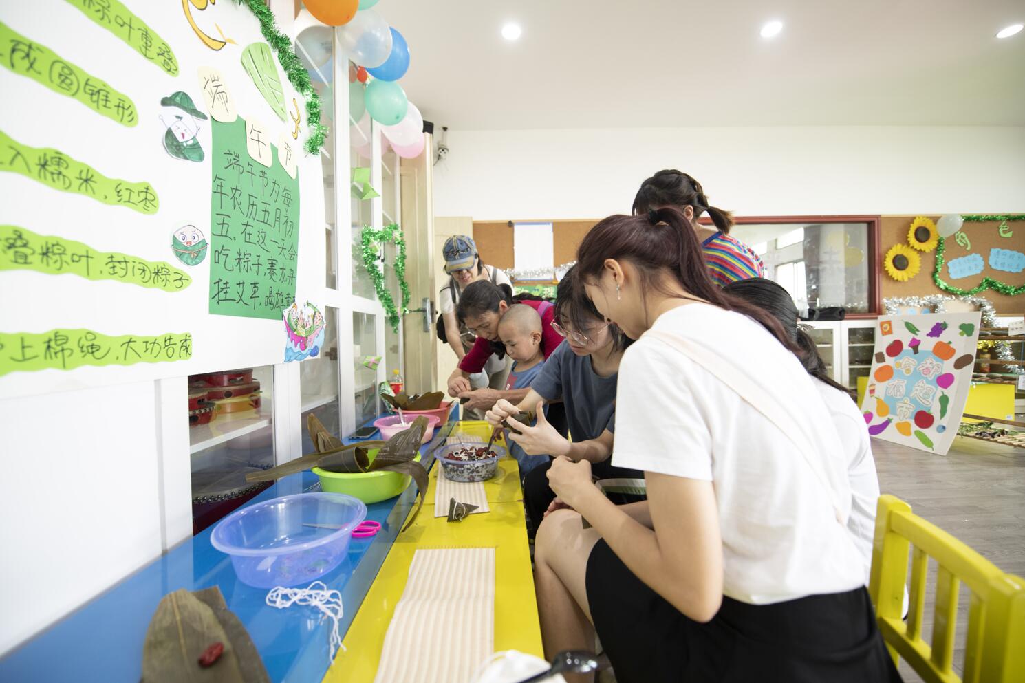 活动开始之前,同学们在李姗泽老师的悉心指导下,经历了前期策划,方案商讨以及环境创设等环节,创建了包含表演区、生活区、科学区、阅读区、建构区等多个活动区域的游戏乐园。并且精心设计了丰富有趣的游戏活动,包括生活类游戏制作“七彩元宝”饺子、花样馒头以及包粽子等;艺术类游戏制作书签、青花瓷瓶绘画、装饰扇子等;科学类游戏气球变变变、神笔小马良、有魔力的静电等。这充分展现同学们在实践活动中整合运用理论知识的能力。