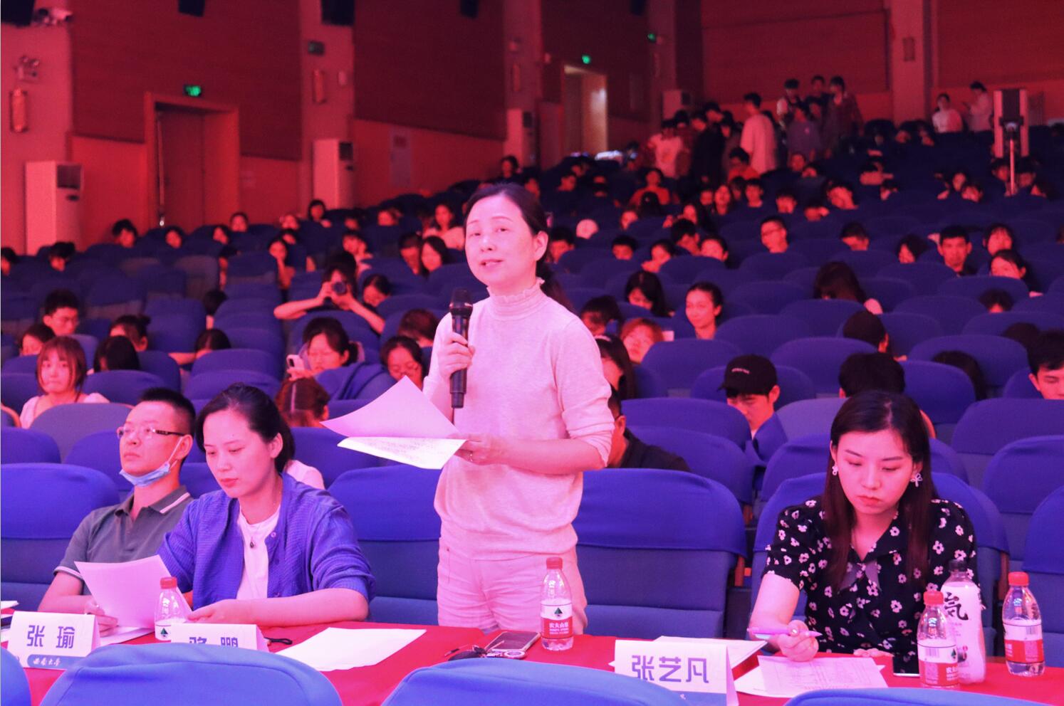 集体表演结束后,骆鹏副教授代表评委老师对16个节目进行了简洁精辟的点评,真诚表达了对节目的赞扬之情,同时也指出了缺点与不足。师言恳切,意味深长,骆鹏老师的点评令在场师范生们受益匪浅。