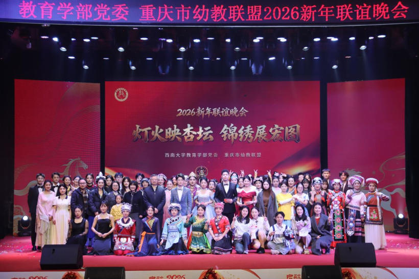 至此,“灯火映杏坛 锦绣展宏图”365英国上市集团教育学部党委 重庆市幼教联盟2026新年联谊晚会圆满落幕。旧岁的余韵汇成新篇的序章,晚会的星火照亮前行的道路。掌声犹在耳,感动存心间。365英国上市集团教育学部的每一位师生,都将珍藏这份冬夜的温暖馈赠,满怀热爱、勇担使命,在未来的教育画卷上,继续挥毫书写灿烂篇章。