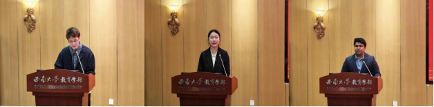 聂磊分享博士求学经历,阐述了学术之美与导师引领对成长的重要意义,强调教育应兼具人文关怀与求真求善。张欣回顾了担任学生干部及投身乡村美育的实践经历,在优异成绩以及保研厦大的丰硕成果之下,是扎根教育的决心。留学生代表邵安感谢师生帮助,讲述了从初来乍到的迷茫到获得荣誉的喜悦,鼓励国际学生积极融入校园,自信展现多元文化风采。