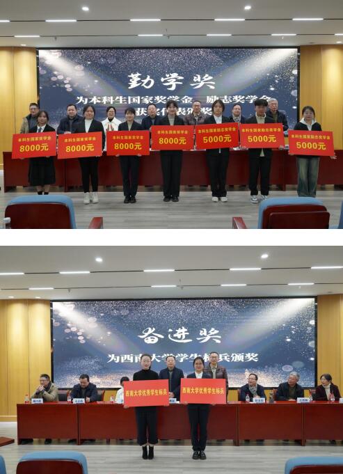 教育学部副部长彭泽平宣读表彰决定,随后勤学奖(各类奖学金获奖),奋进奖(先进集体和优秀个人表彰)和开拓奖(创新创业类竞赛获奖)三类共十七项奖项获奖代表依次上台领奖并合影留念。