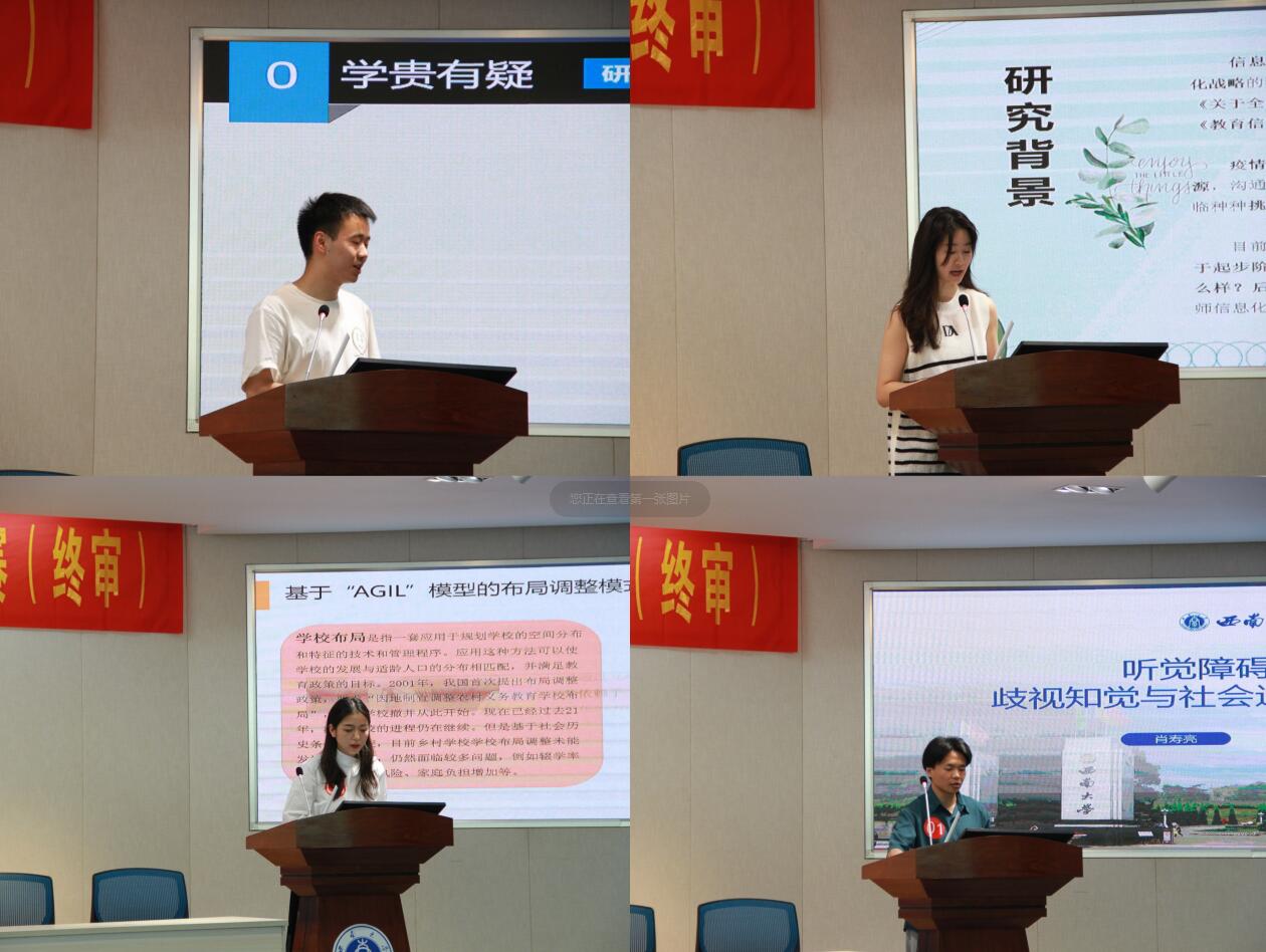 启动仪式后,进行了第十五届“志汉杯”研究生学术作品竞赛(决赛)。唐智松老师、李宝庆老师、王天平老师、王书林老师、陈本友老师、江小英老师担任了此次决赛的评委,研会工作人员罗昆担任主持人。经过前期七个分论坛的激烈角逐,最终选拔出了14名选手进入决赛,在主持人罗昆宣读完汇报规则后,14名选手分别就各自的学术作品进行了汇报。汇报的内容涉及特殊教育、职业教育、教师技术焦虑、乡村学校布局、幼儿教师信息化学习力等多领域的教育话题,充分展现了教育学部研究生们的学术风采。