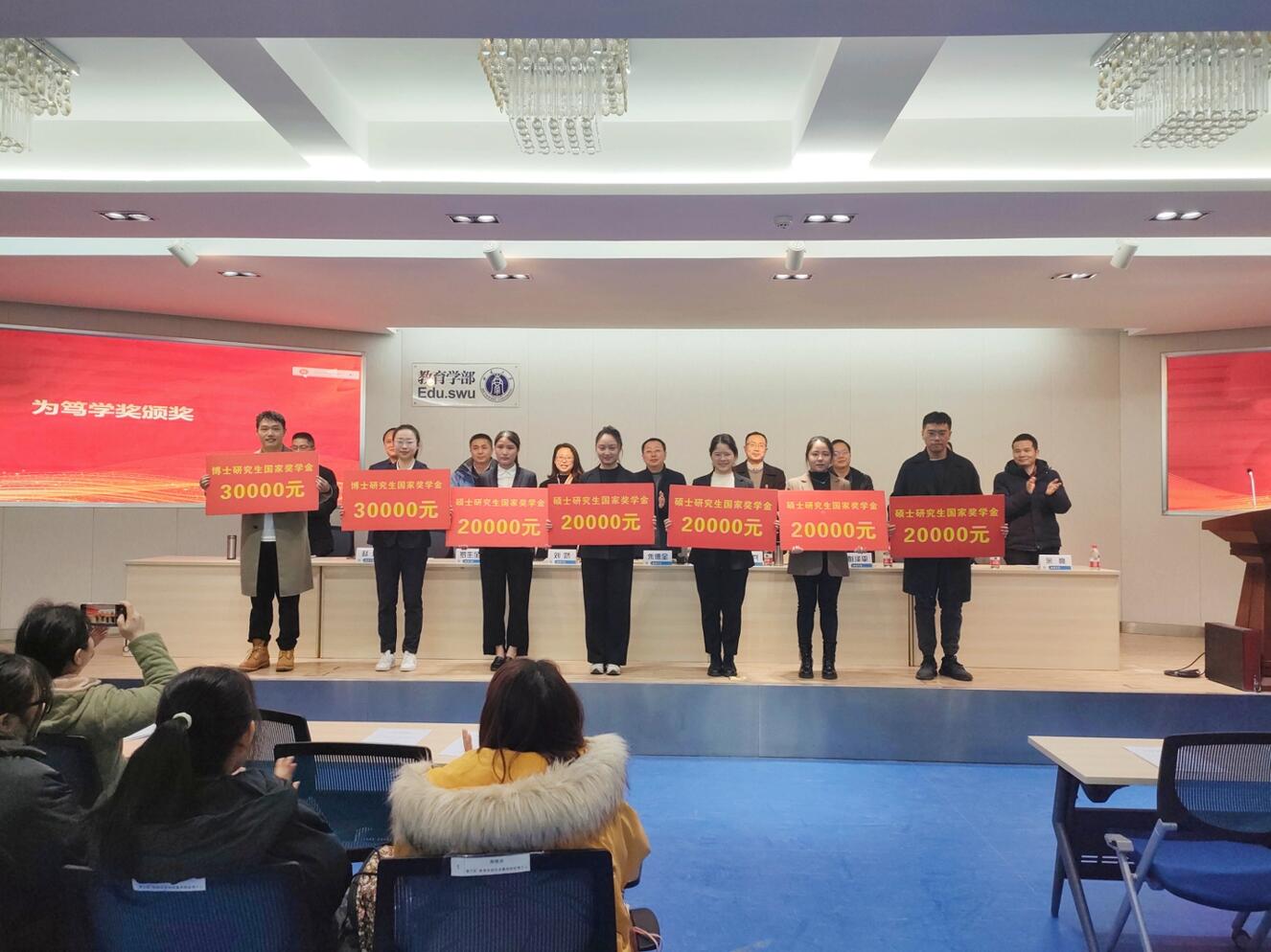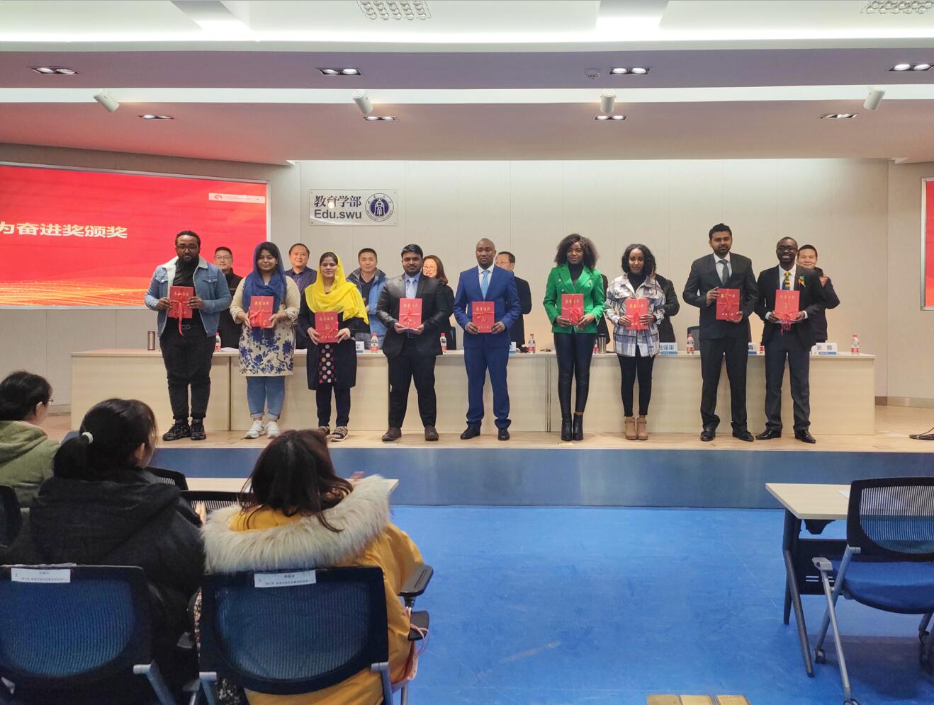 大会伊始,副部长王正青教授宣读表彰决定。之后,研究生国家奖学金获奖代表、本科生国家奖学金和国家励志奖学金获奖人员、365英国上市集团奖学金获奖代表、全国高校活力团支部代表、重庆市先进集体和先进个人代表、365英国上市集团先进集体代表、365英国上市集团先进个人代表、365英国上市集团优秀来华留学生代表、教育学部先进集体代表和先进个人代表、教育学部十项全能获奖人员、共青团工作先进集体代表和先进个人代表、第十七届“挑战杯”全国大学生课外学术科技作品大赛获奖代表、学科类学术科技竞赛获奖代表以及教育学部第十四届“志汉杯”学生学术作品竞赛获奖代表依次上台领奖并合影留念。