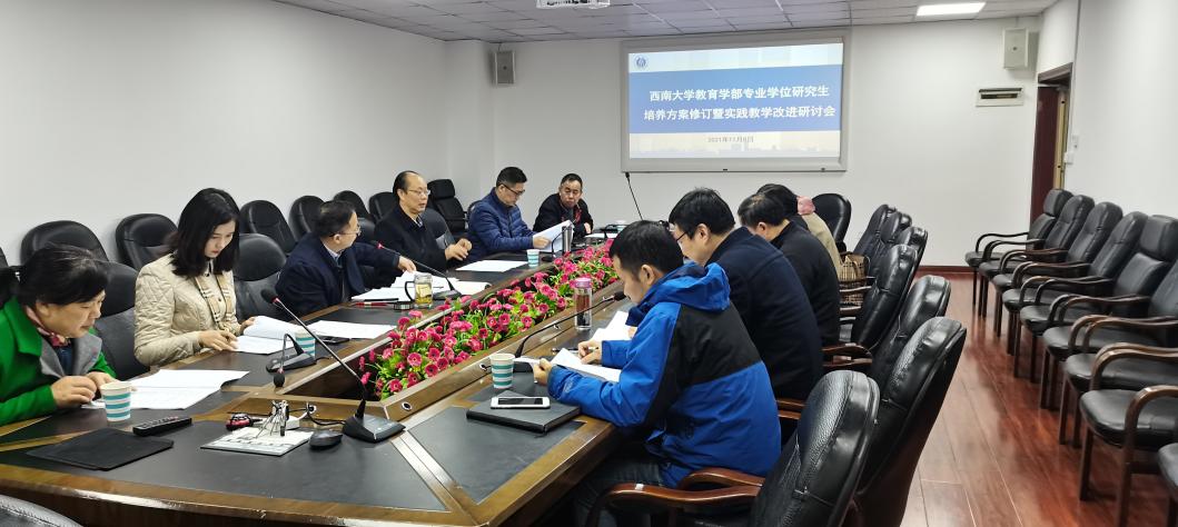 为完善学部专业学位硕士研究生教育培养方案,落实教育硕士专业学位授权点质量专项巡查专家的相关建议,推进学部专业学位硕士研究生教育实践教学改进工作,进一步提升教育硕士质量,11月8日下午,学部在田家炳教育书院403会议室召开专业学位硕士培养方案修订暨实践教学改进研讨会。学部分管研究生教育工作副部长彭泽平教授、唐智松教授、杨晓萍教授、刘革平教授、赵斌副教授、余亮副教授、艾兴副教授、胥兴春副教授、专业学位办公室主任唐云富老师、研究生培养办公室主任秦荣芳老师、教学工作办公室主任田京巾老师参会。会议由学部副部长彭泽平教授主持。
