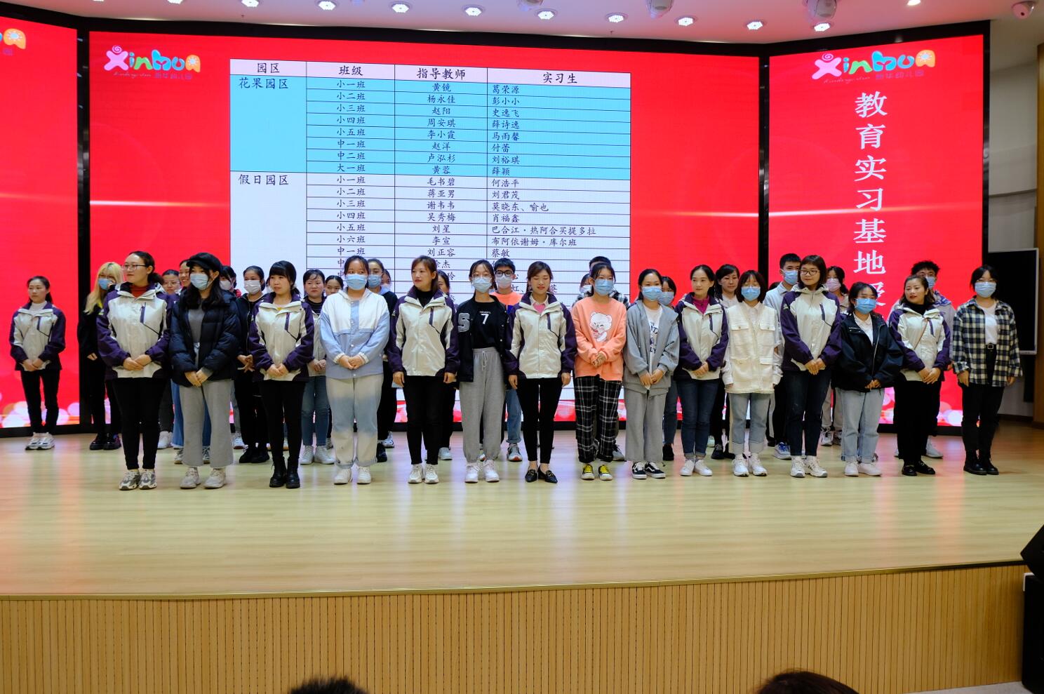 仪式活动最后一项是“实习生交接仪式”。新华幼儿园各班级指导教师依次上台,并与负责的学生对接。随后见习学生在指导教师带领下进入班级开始了见习生活。