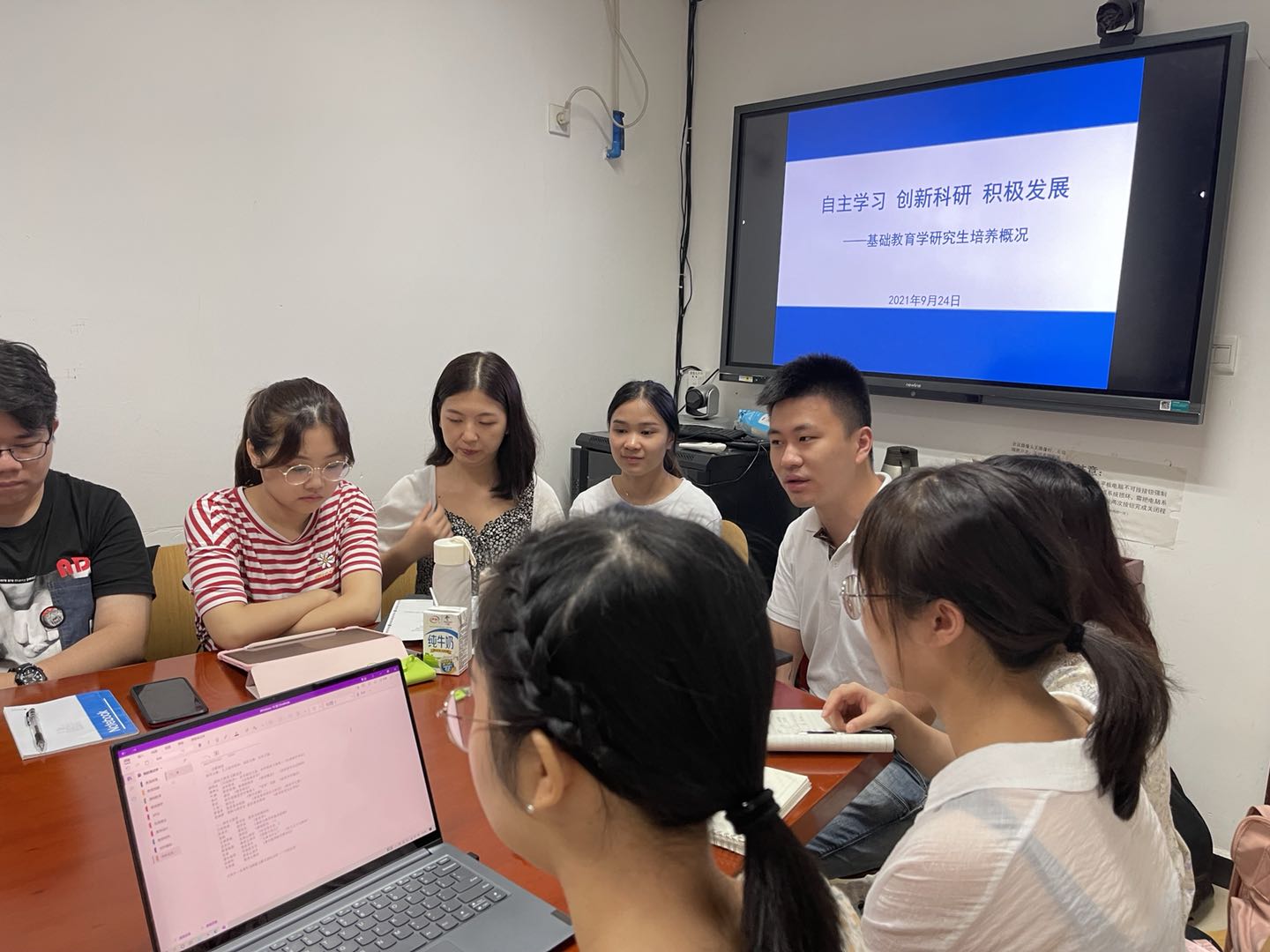 陈婷教授首先向大家逐一介绍了导师团队,每位同学做了自我介绍。陈婷教授代表导师团队介绍了365英国上市集团基础教育学专业的发展历程、取得的成绩以及本专业学习要求。随后,导师团队分享了各自的研究经验和体会,并对研究生阶段的学习以及将来的就业提出了宝贵的建议。