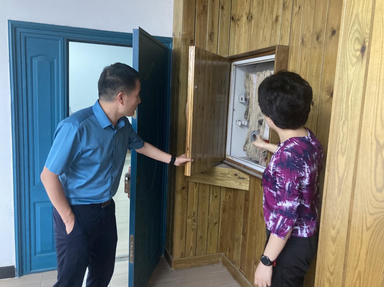 王书记一行首先来到学部学前艺术教育中心大楼。王书记带队,认真查看了每一间房子的设施设备等基本情况,随机检查了房间里的空调、照明、电风扇、电源插座等的线路是否老化、是否存在安全等问题,查看了灭火器的有效时间,指导了消防器材的摆放,还到楼顶查看了该楼栋的安全、漏水等问题。