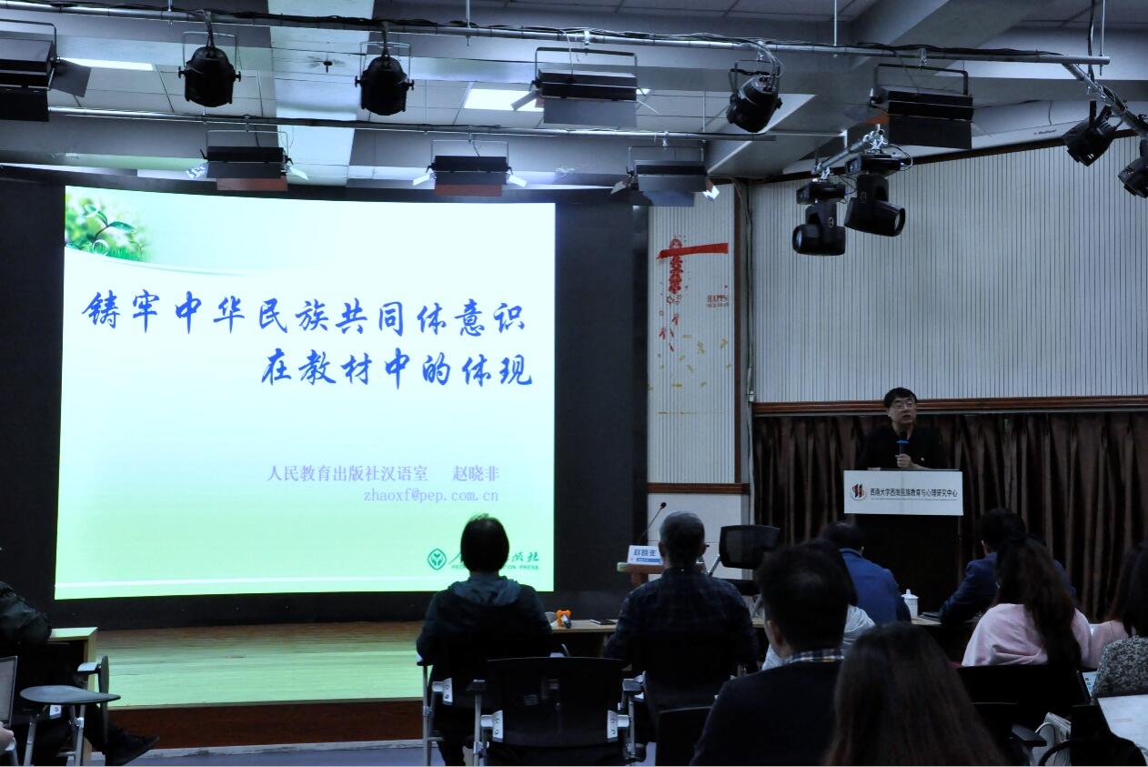 启动仪式后,赵晓非编审做了题为《铸牢中华民族共同体意识在教材中的体现》的首场报告。