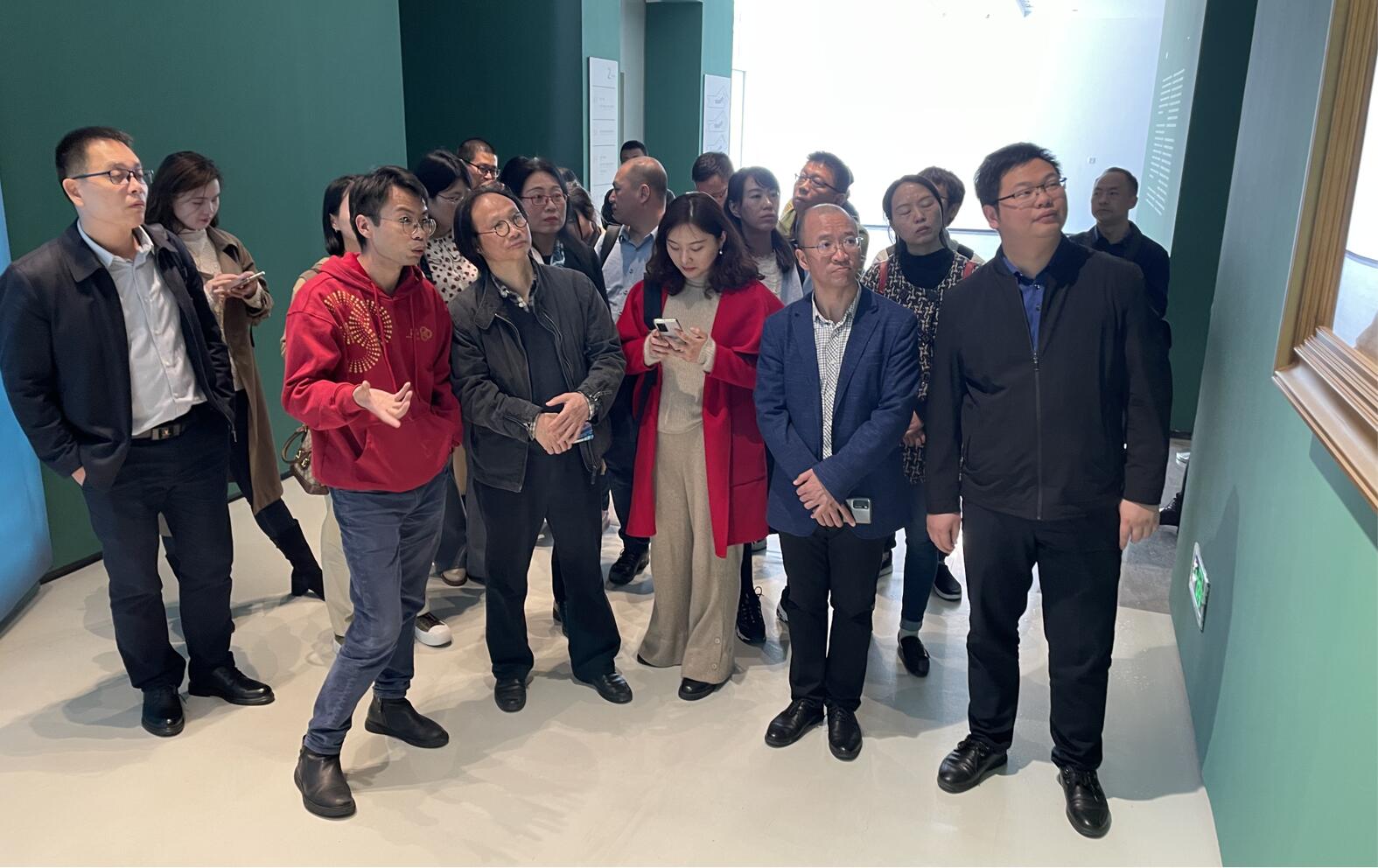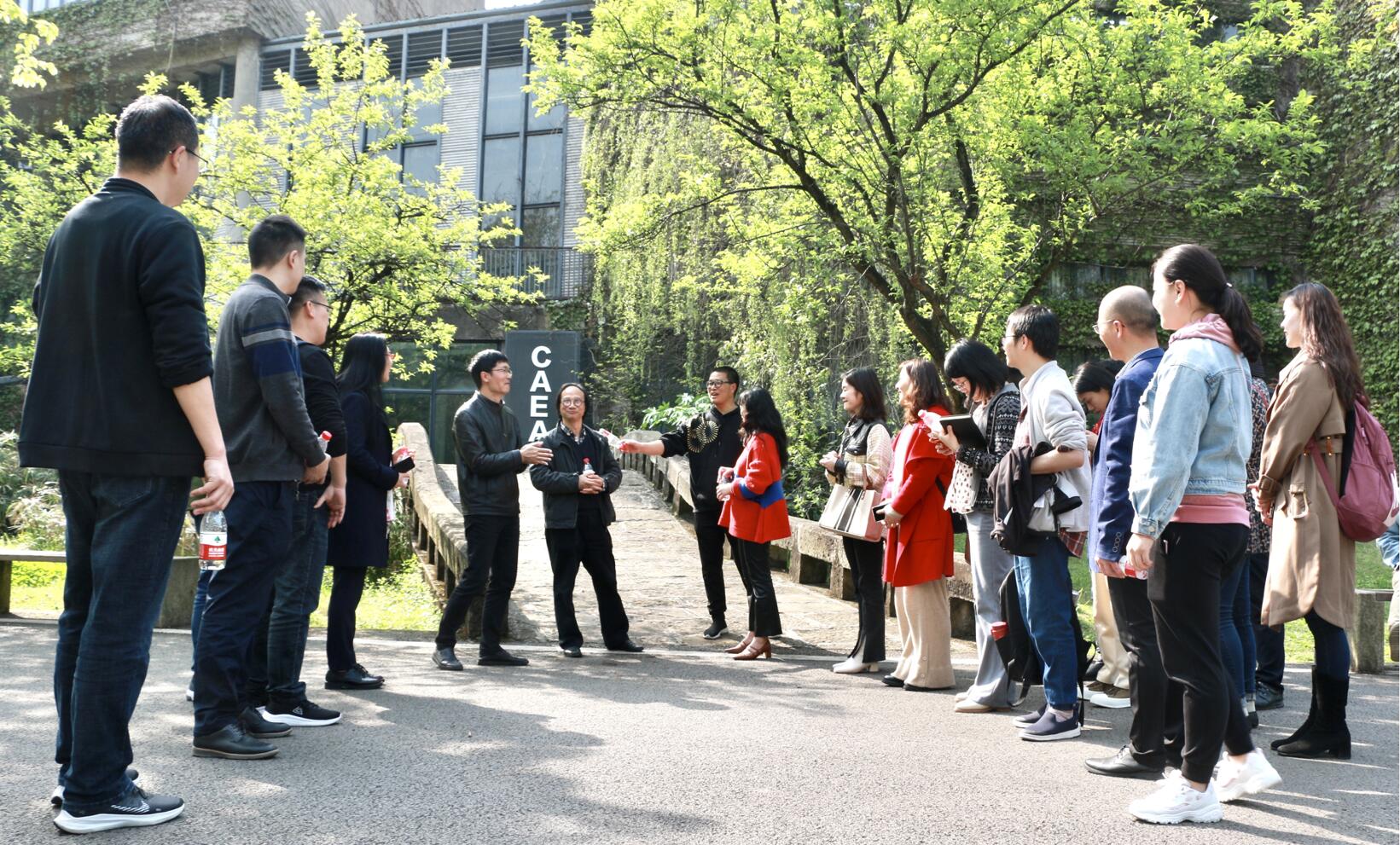 下午,研学团前往四川美术学院(虎溪校区)。在2020级教育博士郁薇和四川美术学院党政办及发展规划处相关人员的组织下,研学团参观了美术馆1号厅,赏析“从南国社到四川美术学院:刘艺斯的艺术轨迹”展、《收租院》群雕铸铜作品及文献展。之后,研学团来到CAEA美术馆,造型艺术学院党总支书记、副院长王天祥教授详细介绍了"绿色设计与可持续发展研究"国家级项目,从危机与使命、定位与目标、结构与内容、思路与创新、实施与愿景等层面,提出了服务国家生态文明建设、建构中国绿色设计体系的重要性和紧迫性,勾勒了构建中国绿色设计体系的愿景目标与初步框架。最后,研学团相聚川美老院子茶叙,发展规划处陈斌处长介绍了四川美术学院的“十四五”规划情况,重点提出将围绕环川美艺术生态圈进行编制,张学敏教授表示高度赞同。研学团一行人通过此次艺术之旅的感同身受,充分体会了四川美术学院作为西南地区唯一的高等美术专业院校在学科建设、培养人才、社会服务等方面的风采。
