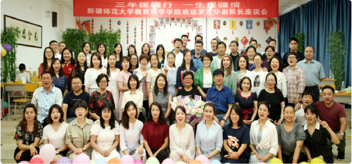 罗江华教授于2017年9月来到新疆师范大学,从此开启了三年的援疆之路。三年来,罗老师积极投入到新疆师范大学教育学院的教学、科研和社会服务等工作中去,展示了优秀的师德师风和敬业精神。他坚持每个学期承担三门本科课程,年均课时达到240学时,即使存在学生学习水平分层多、教学工作量大等问题的情况下,他仍然意识到自己作为援疆干部,要率先垂范、立德树人,责任重大,迅速调整自己适应新的工作环境,得到了优秀的教学评价。援疆路上,罗江华老师还用真情走近新疆学生们的生活,与他们成为“亦师亦友”的关系,为促进民族团结、铸牢中华民族共同体意识作出了积极贡献!