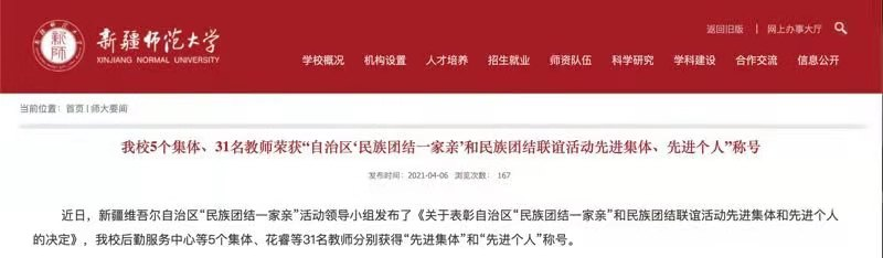 表彰原文链接:https://www.xjnu.edu.cn/2021/0406/c11506a113467/page.htm