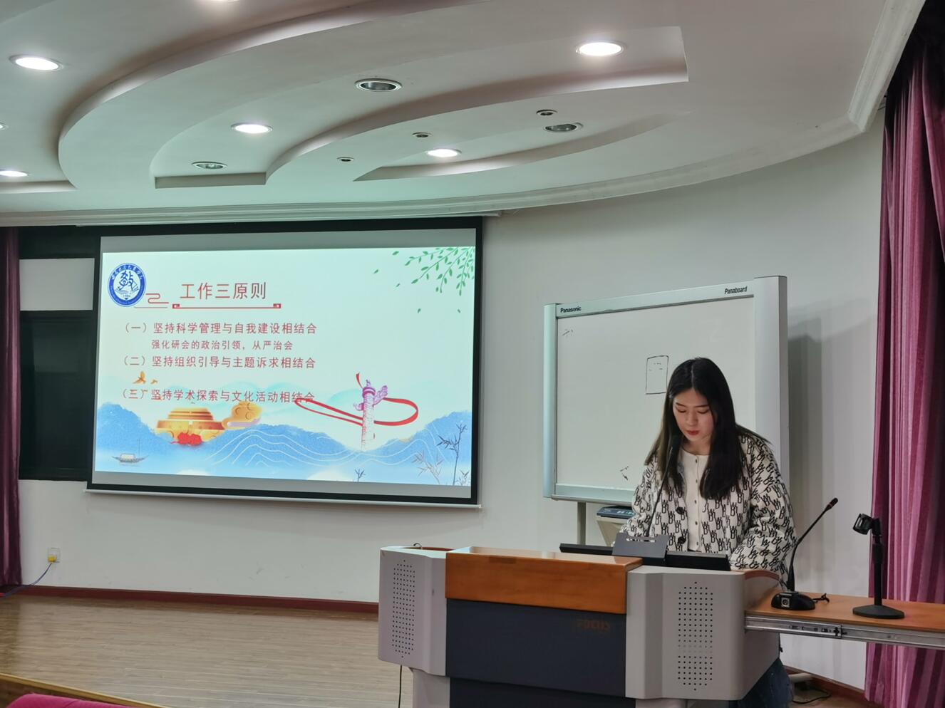 首先主席团代表陈泽坤宣读主席团换届结果:车雨担任执行主席,罗月娥担任团总支副书记,陈泽坤为主席团成员,共同参与研会各项事宜。