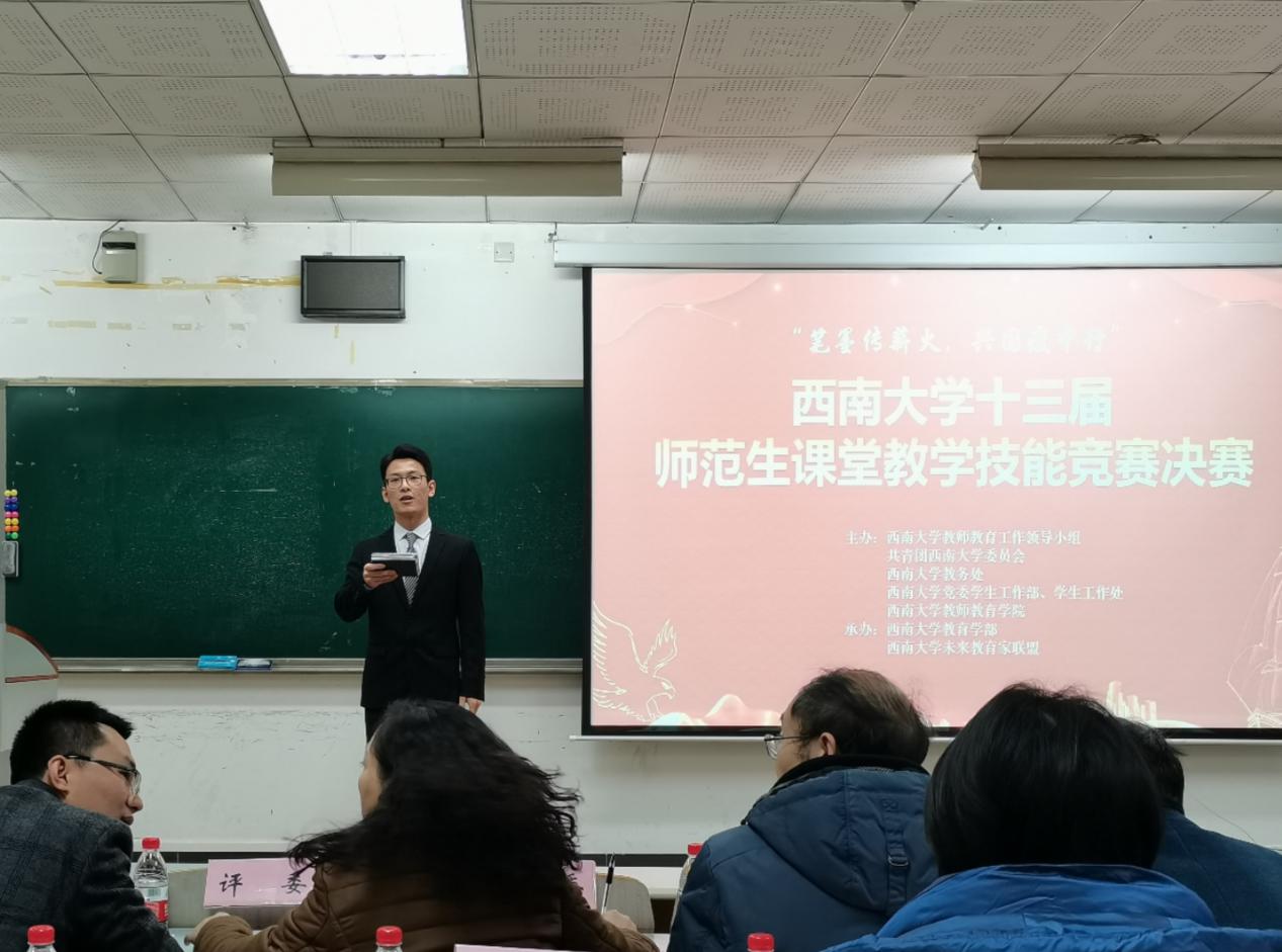 春风化雨,以情动人,胸有成竹展教师锋芒。来自外国语学院的曾丹运用流利标准的口语和灵活多变的讲课方式,结合家庭情境中的英语对话,给学生带来了一节妙趣横生的语法课堂;化学化工学院的于疏桐凭借巧妙的板书设计和丰富的肢体动作,形象地讲授了《元素的性质与原子结构》的有关知识;以过山车、投掷、自行车等鲜活易懂的生活经验为例,物理科学与技术学院的尹浚龙从生活中汲取授课灵感,具体诠释了向心力这一抽象概念;美术学院的付静怡于画中感情,诠释了“美术是创造性劳动,即在于营造艺术的情趣和意境”这一重要道理;文学院的谢卓沄深入浅出,引领学生们走进了郁达夫笔下的世界,感受了《故都的秋》令人心折的悲凉之美。