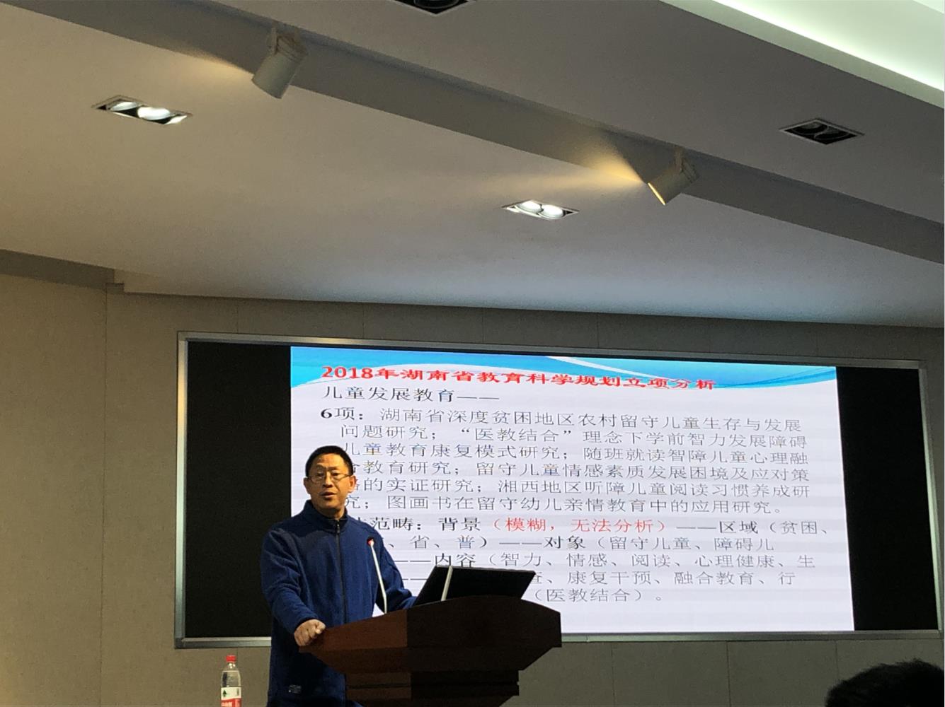 讲座围绕“学前教育研究的问题范畴分析”主题展开。皮老师提出,一定时期的政府立项课题较大程度上代表事业发展中的宏观问题。因而在学前教育研究范畴分析的基本线索中,他提出理应以“背景”、“区域”、“对象”、“内容”、“方法”、“理论关照”这几个关键词作为分析关键要素的观点视角。首先以湖南省教育科学规划立项项目为例,皮老师从儿童发展教育、文化资源课程、教师专业发展、事业发展管理等多项具体内容中,逐一展开了关于上述具体范畴的分析。其中,“背景”和“理论关照”尤为重要。如皮老师所言,“学术的任何微观都能镶嵌进宏观,也只有镶嵌进宏观,微观才能体现出真正的’观’”。第二,从全国学前教育课题立项分析来看,对于当前学前教育研究的核心关注点主要在于儿童发展教育问题和儿童事业发展管理问题。皮老师认为,只有把握好这两部分的核心观点,才能对幼儿园老师和课程的研究。